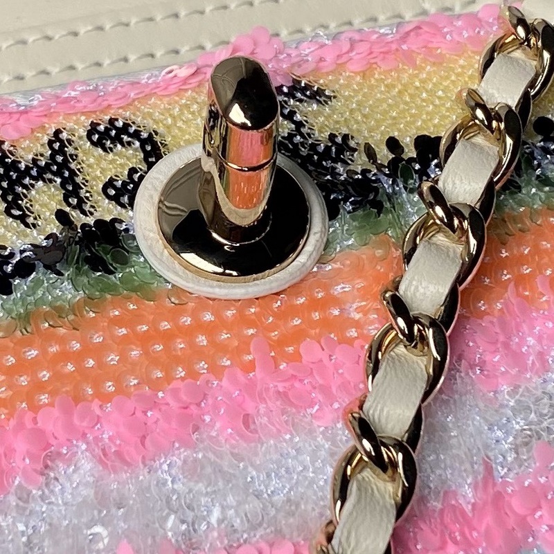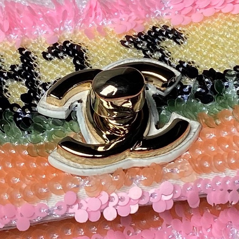 Chane1 24A 모델 보기 AS3268 미니 스팽글 글자 작은 쓰레기 봉투 색색의 스팽글이 겹쳐진 자수. 반짝반짝. 단순한 가방이 아니라 예술 작품입니다. 정교한 다색 로고: 독특하고 세련된 느낌을 주어 세련미를 더해줍니다. 정교한 장인 정신을 보여줍니다. 빛을 받으면 반짝반짝 빛나며 멋지게 보입니다. 양가죽과 함께 사용하면 전체적으로 고급스러운 느낌을 줍니다. 정말 매력적입니다. 크기: 12cm