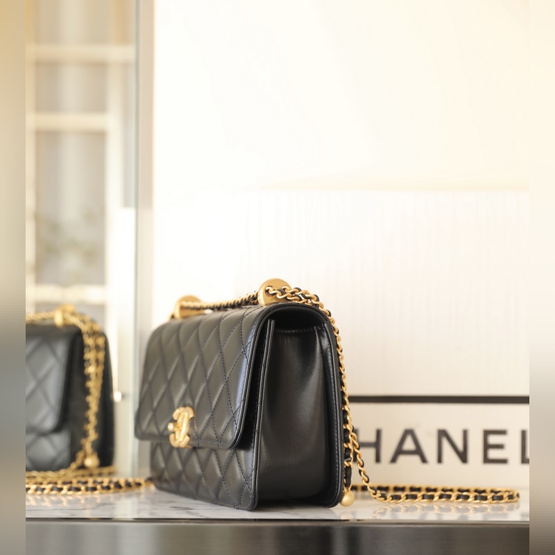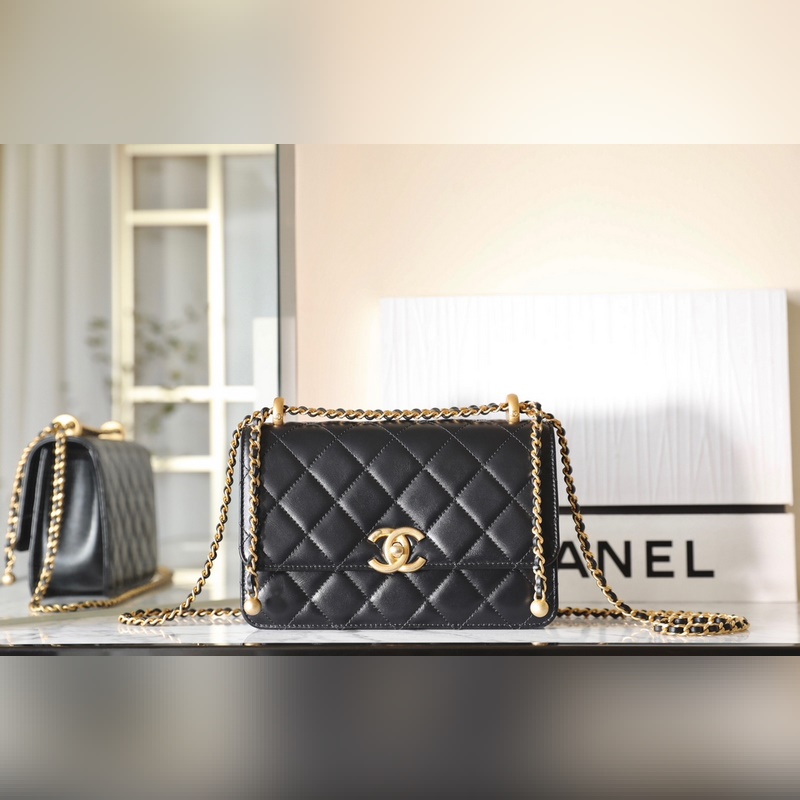 새로 도착한 이른 봄 더블 골드 진주 입 커버 백 블랙 미디엄 소매가 구
