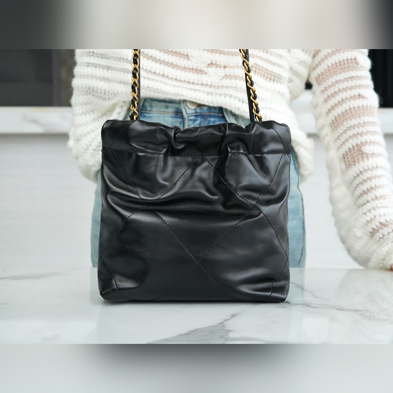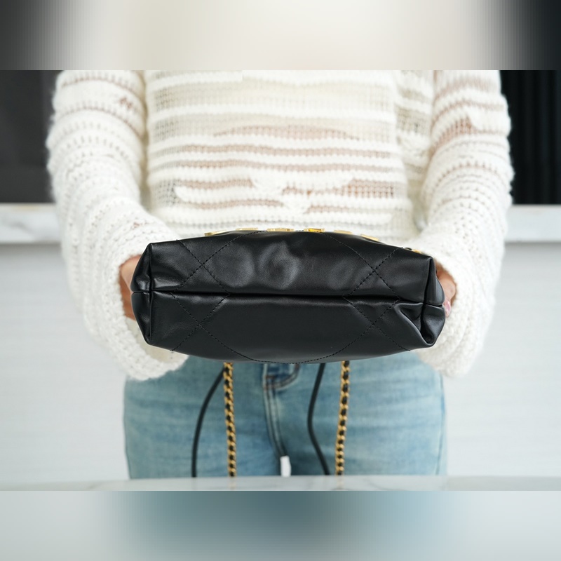 샤넬 23S 22미니 백 블랙과 골드 오랫동안 기다려온 미니 22백이 출시되었습니다. 22백의 작은 버전은 더욱 귀엽고 장난기 넘칩니다. 여전히 부드럽고 가벼운 송아지 가죽으로 만들어졌습니다. 작은 몸체이지만 큰 용량을 가지고 있어 외출용으로 완벽합니다! 크기: 19×20×6cm 소매가: 38200위안