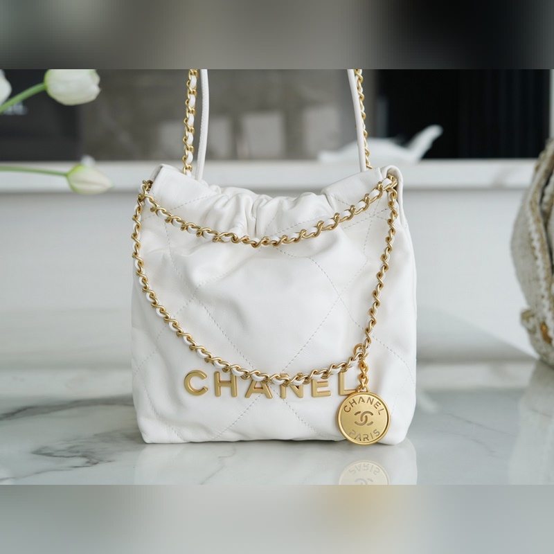 23s 봄/여름 신상 22미니 가방 오리지널 가죽 화이트 오랫동안 기다려온 미니 22백이 출시되었습니다. 22백의 작은 버전으로 더욱 귀엽고 장난기 넘치는 느낌을 줍니다. 여전히 부드럽고 가벼운 송아지 가죽으로 만들어졌습니다. 작은 크기에도 불구하고 용량이 크고 외출용으로 완벽합니다! 크기: 19×20×6cm : 23200861