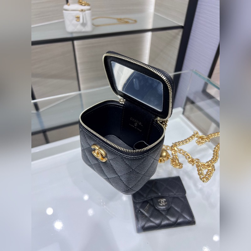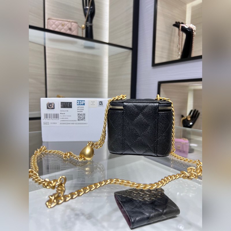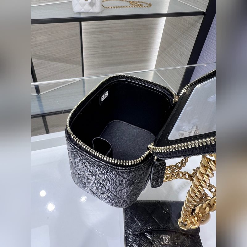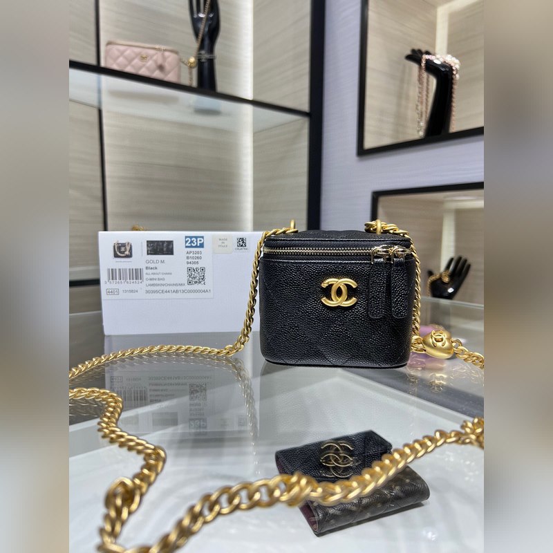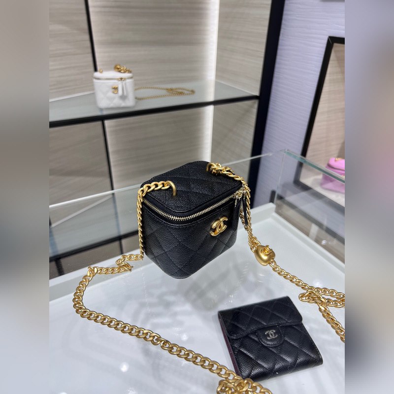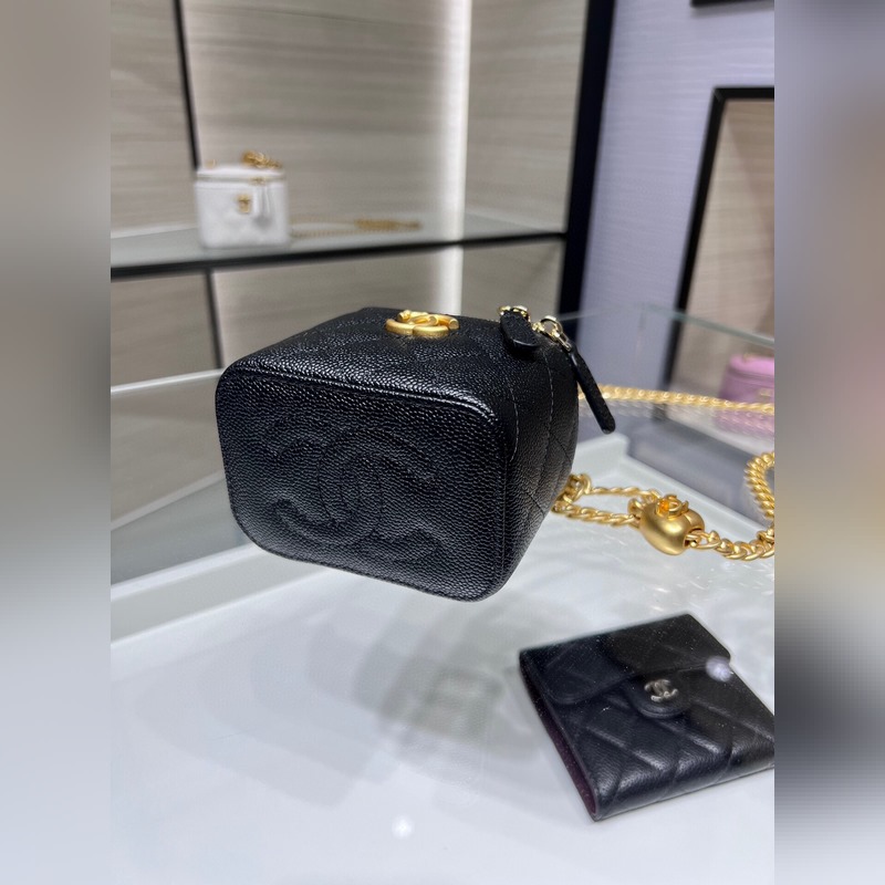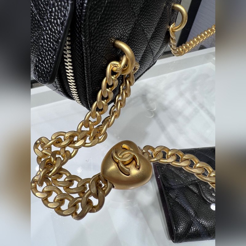 Ohanel 23 새로운 박스형 가방 가장 아름다운 조절식 하트 모양의 걸쇠 조절식 체인 더블 C 엠보싱 로고가 있는 캐비어 가죽. 정교하고 아름다운: 3203Y 사이즈 8.5X11X7cm