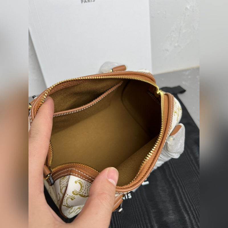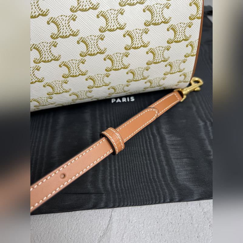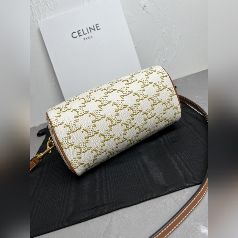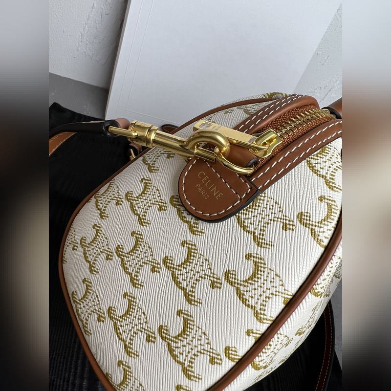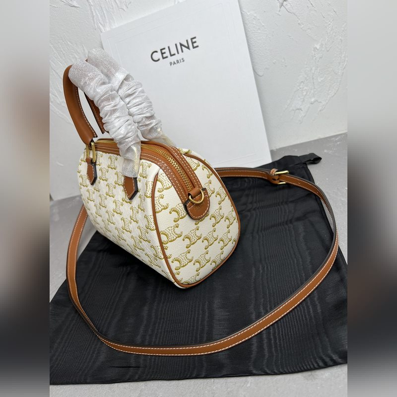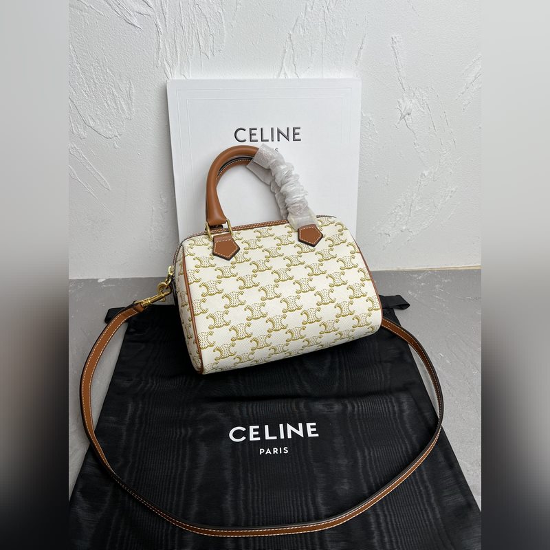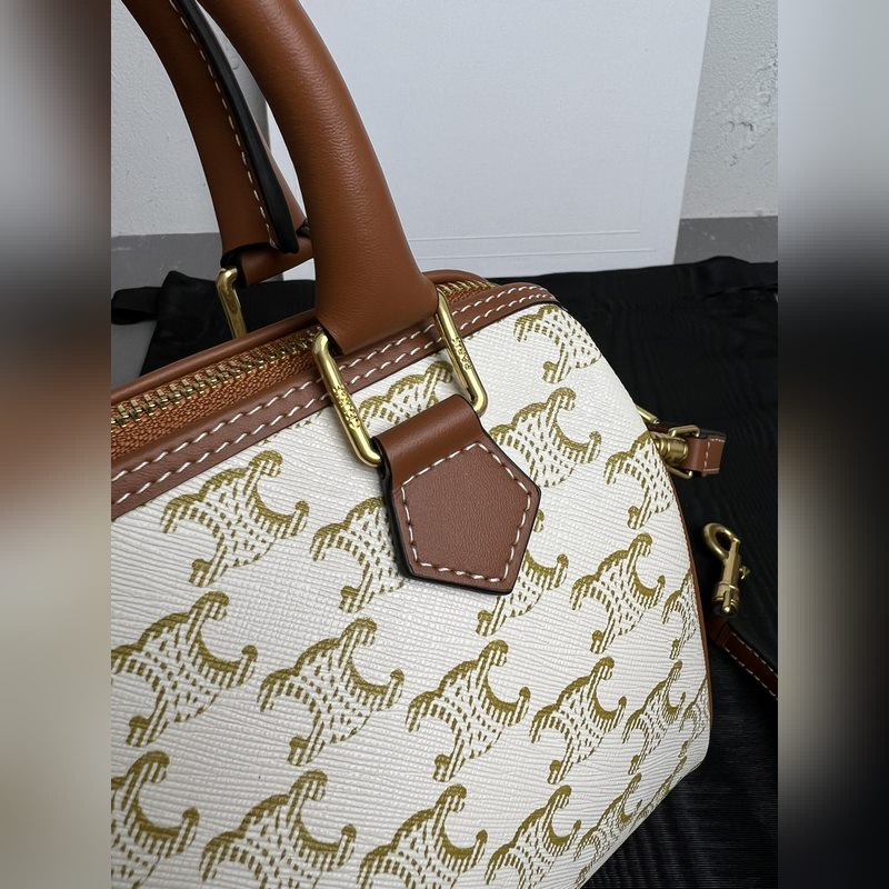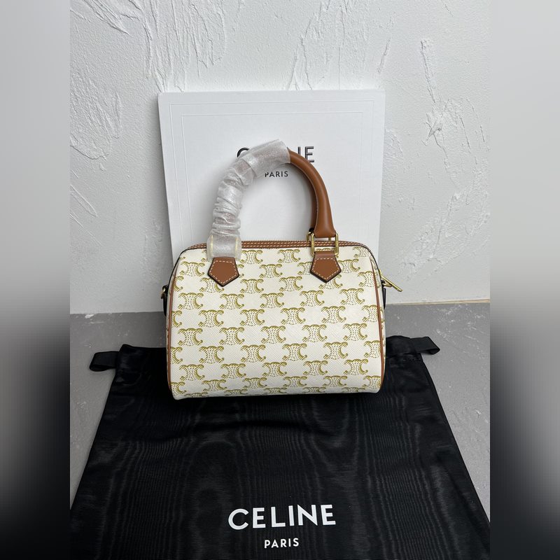 정품 CELINE|소형 보스턴 가방 로고가 인쇄된 소가죽 소재 TRIO