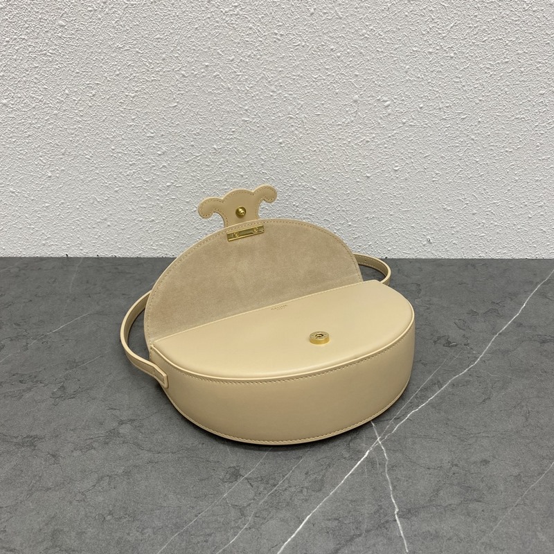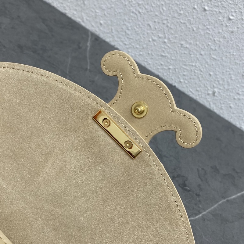 진짜 신제품 온라인 셀린느 2025 겨울 쇼 모델 바사체 개선문 ~ 문 백 하프 문 백 바디 스냅 버튼 엠보싱 스타일 개선문 로고 가죽 버튼 디자인에 매우 신경을 쓴 문학적 느낌 매우 가볍고 귀여움 긴 어깨 스트랩 크로스 바디로 착용하기 편함 스타일: 부드럽고 귀여운 복고적이고 문학적인 패셔너블한 사람들 모두 용량: 매일 외출에 충분 모델 번호: 111233 P90078 크기: 23-13.5-6 모래색