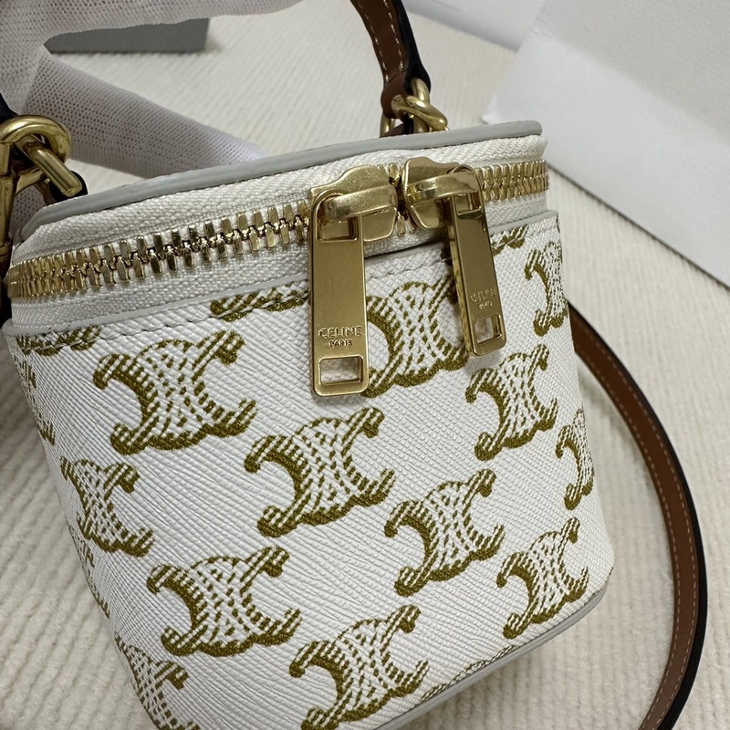 정품 CELINE 신제품 온라인|2025년 신제품 입체형 박스백 작은 원통형 가방 타입의 이중 지퍼 잠금장치 손목에 착용 가능. 정말 가성비가 좋은 가방입니다! 심플하고 복고풍이며 정교합니다. 어깨에 메거나 손에 들고 다니기에 완벽합니다. 물론 휴대폰을 제외한 파우더 립스틱 열쇠 등 일상생활에 필요한 모든 물건을 넣을 수 있습니다. 이 가방을 강력히 추천합니다! 모델 번호: 10J762 화이트/브라운 크기: 9.5×8×9 (원 포장 상태)