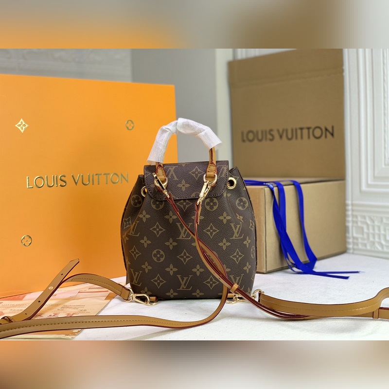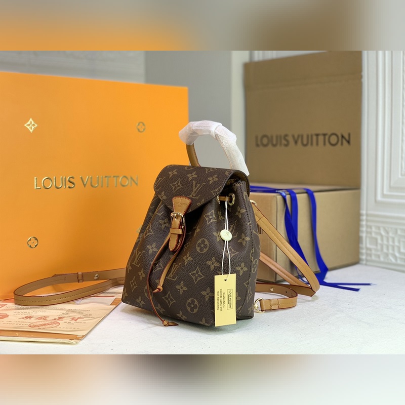 LV LV 미니 몽수리 BB 배낭 모델 번호: M45516 M45502 클래식한 모노그램 캔버스와 송아지 가죽 소재의 현대적이고 컴팩트한 디자인에 1994년 오리지널 디자인을 기반으로 한 버클과 가죽 끈이 더해졌습니다. 상단 손잡이와 탈부착 및 길이 조절이 가능한 가죽 어깨 스트랩으로 다양한 운반 옵션을 제공합니다. 크기: 17-20-10.5 cm 번호: GS9618680