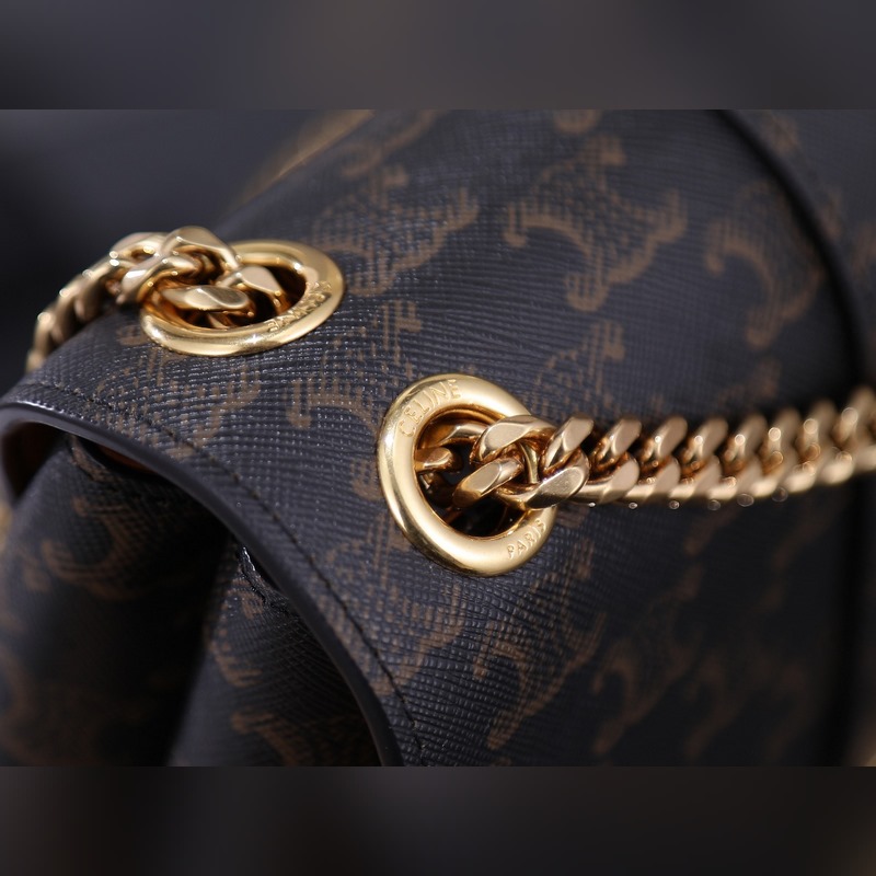 오리지널 가죽 [우수한 품질 올스틸 하드웨어]|빅토르 중형 소프트 카우하이드 핸드백 셀린느가 드디어 어깨에 메거나 크로스 바디로 착용할 수 있는 가방을 출시했습니다. 셀린느 SU24의 최신 모델 빅투아르 빅토리(Victorie)는 승리 그리고 승리라는 뜻입니다. 오랫동안 잃어버렸던 체인 아크 드 트리옴페 백은 많은 유명 인사들의 ~ 고급 천연 소가죽으로 제작 거친 표면은 고급스러운 느낌을 주고 촉감이 부드럽습니다. 체인 부분은 전통적인 삼각형 모양으로 잘려 있습니다. 100% 편안하고 보석처럼 반짝입니다. 소가죽 양가죽 안감 골드 컬러 마감 크로스 바디 또는 어깨에 메는 스타일 올 스틸 TRIOMPHE 스냅 잠금 메인 수납공간 2개 내부 플랫 포켓 1개 내부 중앙 지퍼 포켓 1개 올 스틸 금속 슬라이딩 체인 최소 길이 25cm 최대 길이 47cm 크기: 25 x 15 x 8cm 아이템 번호: 115853