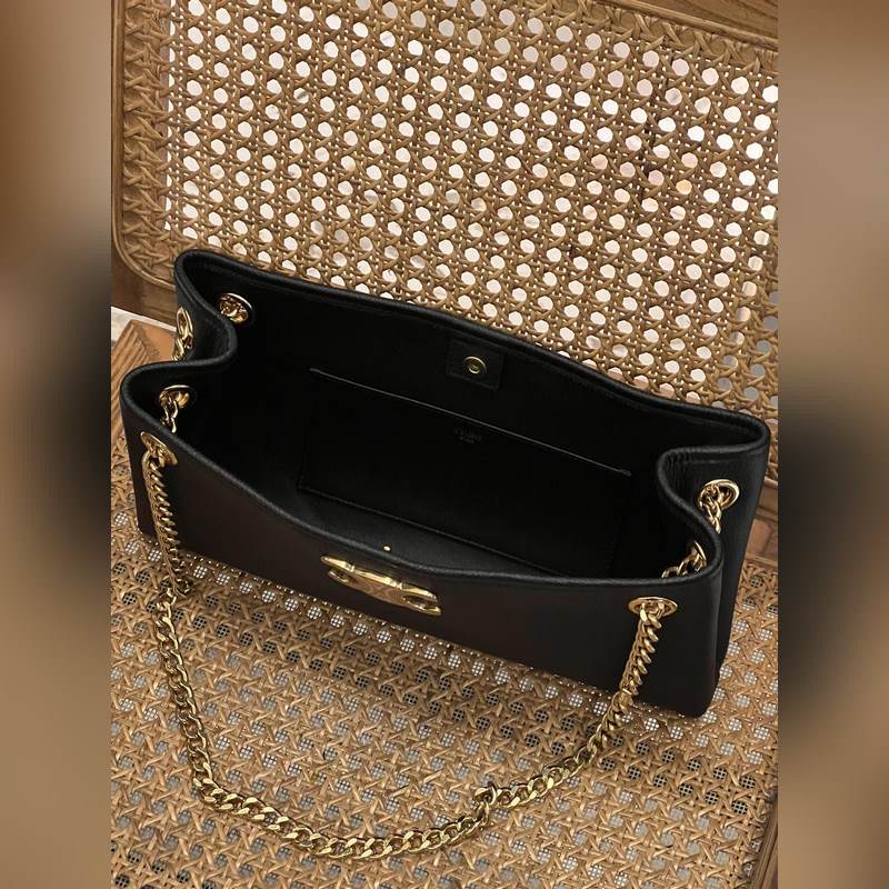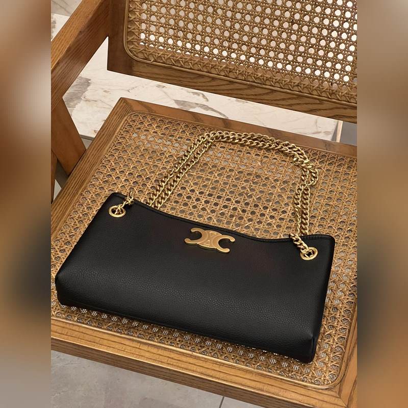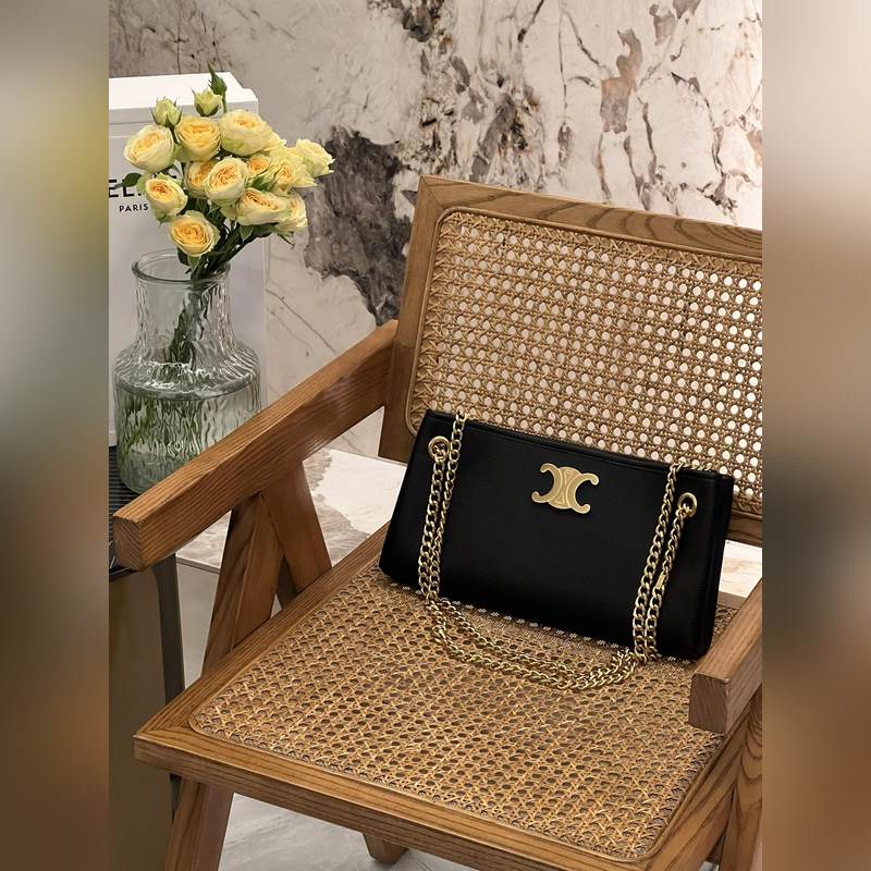진짜 새로운 더블 체인 백 신문사 체인백 매우 고급스러운 골드 체인과 체인 및 금속의 전체적인 질감에 잘 어울리는 개선문 로고 다양한 운반 방법 스냅 버튼 잠금 다양한 상황과 의상에 사용할 수 있는 다재다능함 매우 멋진 외관 카리스마 넘침 114253 크기: 31-16-6cm