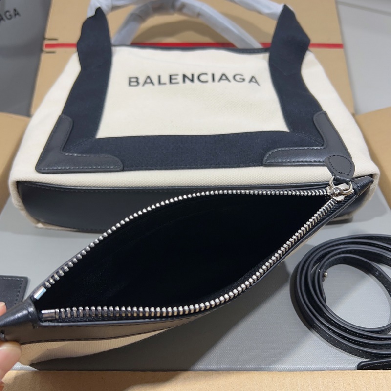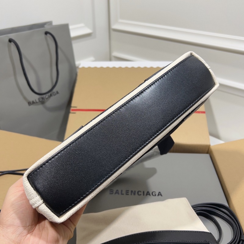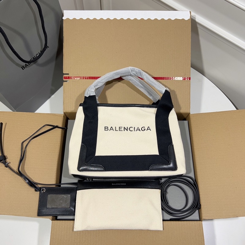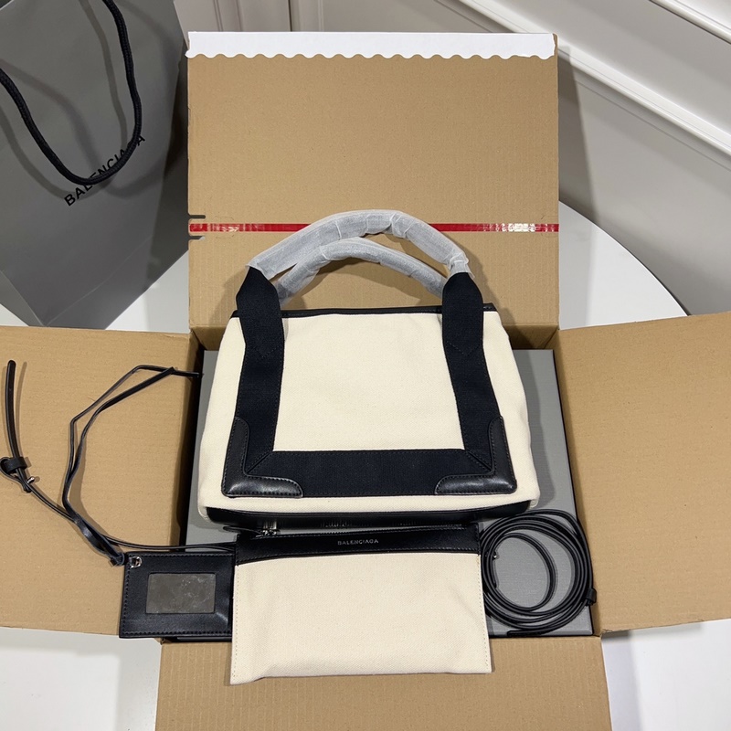 발렌시아가 새로운 오리지널 싱글 라인 모노그램 BALENCIAGA 17 봄과 여름 신상 NAVY CABAS 쇼핑백 수입 내마모성 면 캔버스 소가죽 트림 양쪽에 스냅 버튼이 달려 있어 가방 모양을 마음대로 바꿀 수 있음 소지품을 쉽고 빠르게 정리할 수 있음 출퇴근 시 사용하기 매우 적합 세련되고 넉넉한 사이즈의 메이크업 거울/긴 어깨끈 크기: 25*18*9cm