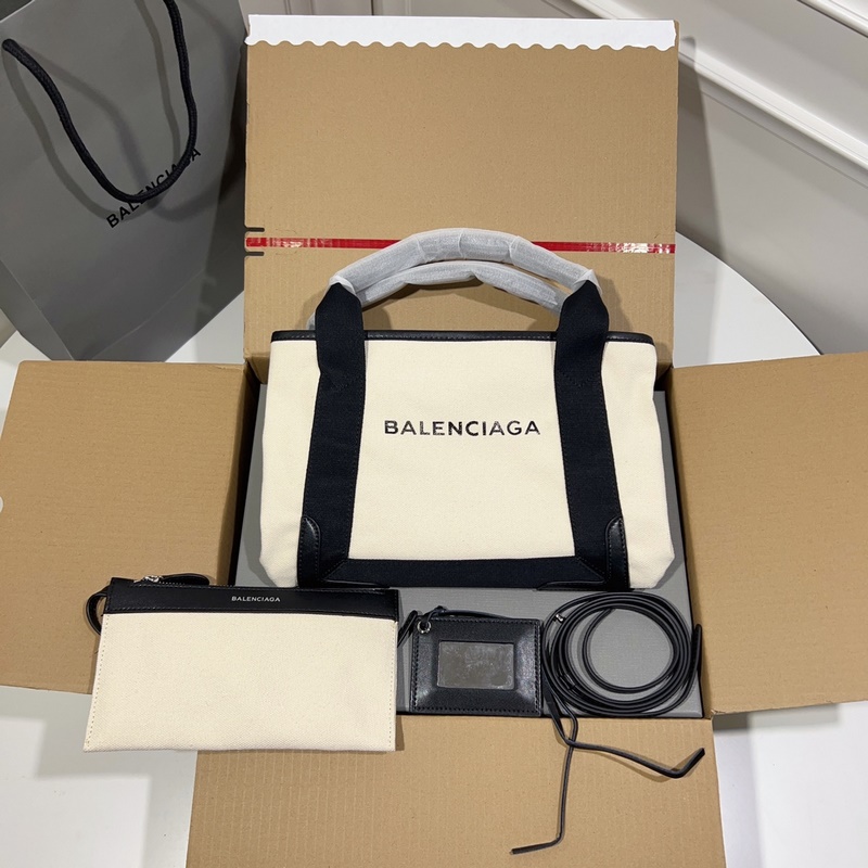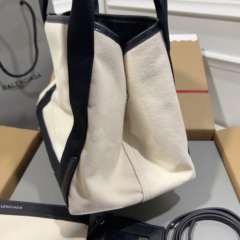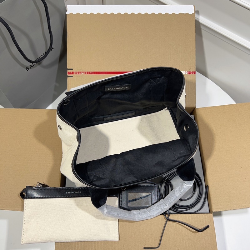 발렌시아가 새로운 오리지널 싱글 라인 모노그램 BALENCIAGA 17 봄과 여름 신상 NAVY CABAS 쇼핑백 수입 내구성 좋은 면 캔버스 소가죽 트림 양쪽에 스냅 버튼 다양한 방법으로 사용 가능 소지품 정리 가능 휴대하기 편리 출퇴근 시 사용하기 매우 적합 세련되고 넉넉한 크기 화장품 거울/긴 어깨 끈 크기: 30*20*17