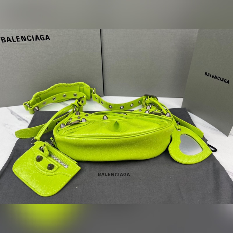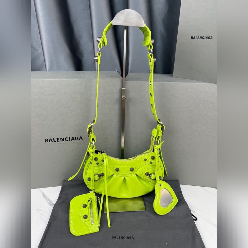 업그레이드 버전 형광 녹색 ~ 발렌시아가 르 카골레 하프문 겨드랑이 가방/크로스바디 백 왕자 BB의 새로운 인기 아이템이 여기 있습니다~ 컴팩트하고 세련된 디자인으로 다양한 방식으로 착용할 수 있으며 모든 패턴의 디자인 감각이 정말 압도적이며 고급스러움이 가득합니다. 착용하면 매우 캐주얼하고 넉넉해 보입니다. 크기: 26*6*12 8085
