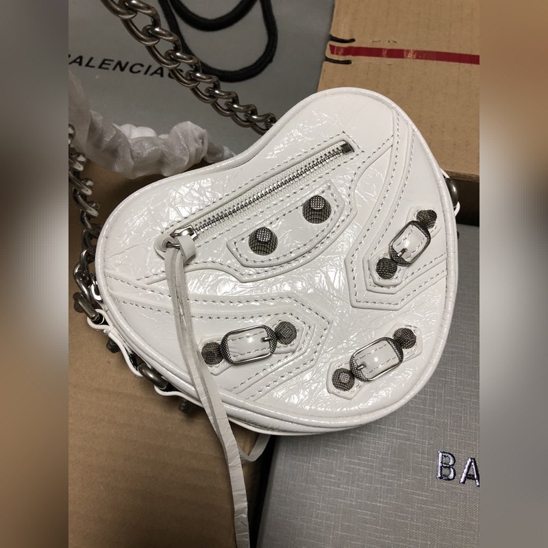 원작인 싱글 파리 발렌시아가의 새로운 르 카골르 하트(Le Cagole Heart)는 샤넬의 러브백(Love Bag)과는 매우 다른 스타일과 분위기를 가지고 있습니다. 아이를 의인화한다면 하나는 부잣집 소녀의 풍요롭고 우아한 외모이고 다른 하나는 오토바이를 타면서 가죽 재킷을 입은 달콤한 모습입니다! 하트 모양의 가방은 작지만 자동차 열쇠 티슈 립스틱 카드 홀더 파우더를 넣을 수 있습니다. 만두 스쿠터 가방은 휴대폰도 들어갑니다 하트 스터드 배지가 달려 있습니다. - 몇 가지 통계가 담긴 가방 중간 크기지만 꽤 넉넉합니다~ 깊이 5 CM 높이 15cm 어깨끈 90cm 폭 17cm