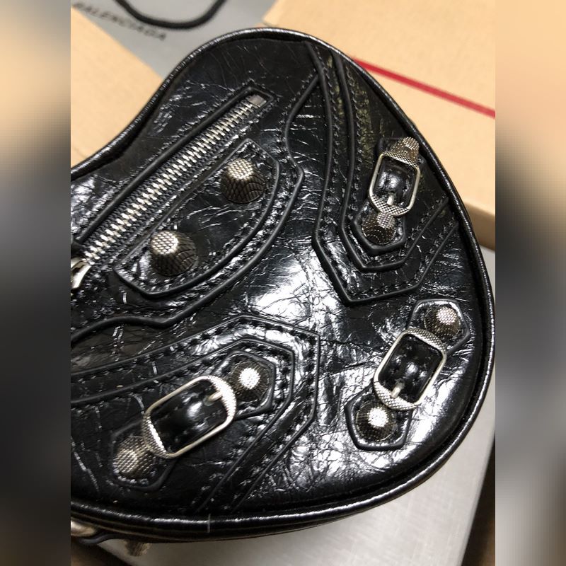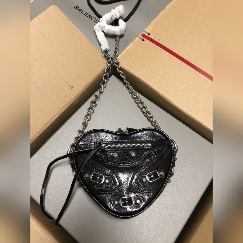 원작인 싱글 파리 발렌시아가의 새로운 르 카골르 하트(Le Cagole Heart)는 샤넬의 러브백(Love Bag)과는 매우 다른 스타일과 분위기를 가지고 있습니다. 아이를 의인화한다면 하나는 부유한 가정의 우아하고 부유한 딸이고 다른 하나는 가죽 재킷을 입고 오토바이를 타는 달콤한 소녀입니다! 하트 모양의 가방은 작지만 자동차 열쇠 티슈 립스틱 카드 홀더 파우더 등을 넣을 수 있습니다. 만두 스쿠터 가방은 휴대폰도 들어갑니다 하트 스터드 배지가 달려 있습니다. - 몇 가지 통계가 담긴 가방 중간 크기이지만 꽤 넉넉합니다. VIP 패키지와 함께 제공됩니다. 깊이 5 CM 높이 15cm 어깨끈 90cm 폭 17cm