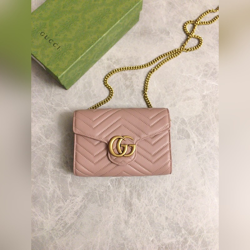 GUCCI 오리지널 싱글 제품! GG 마몬트 미니 체인백은 구조적이고 부