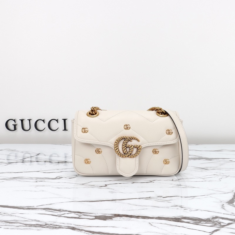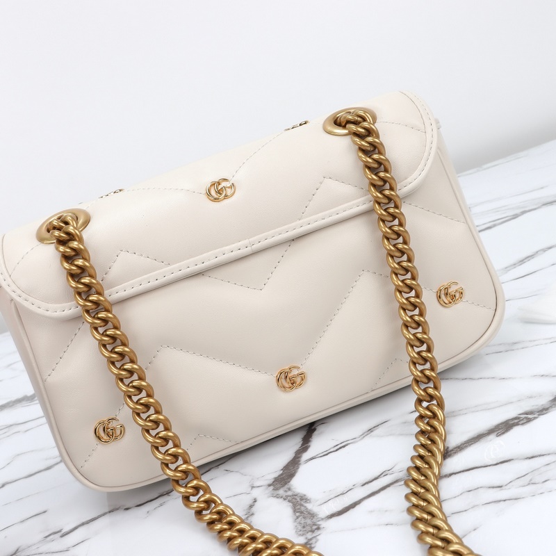 구찌 신상 모델 백화점 품질 실제 물건 모델 번호: 446744 작은 흰색 가죽 더블 G 크기: 폭 22 x 높이 13 x 깊이 6cm.