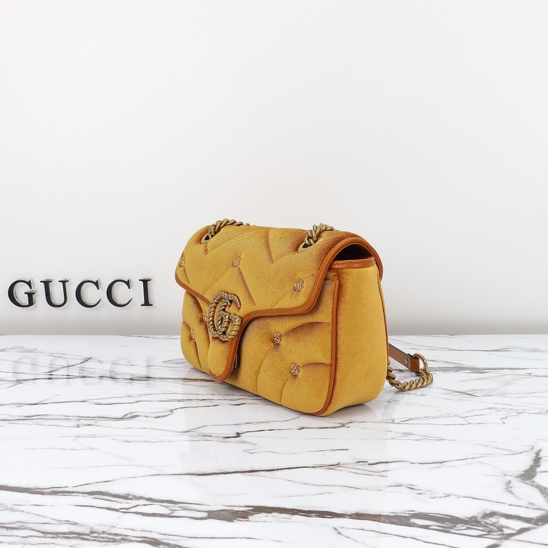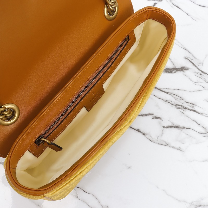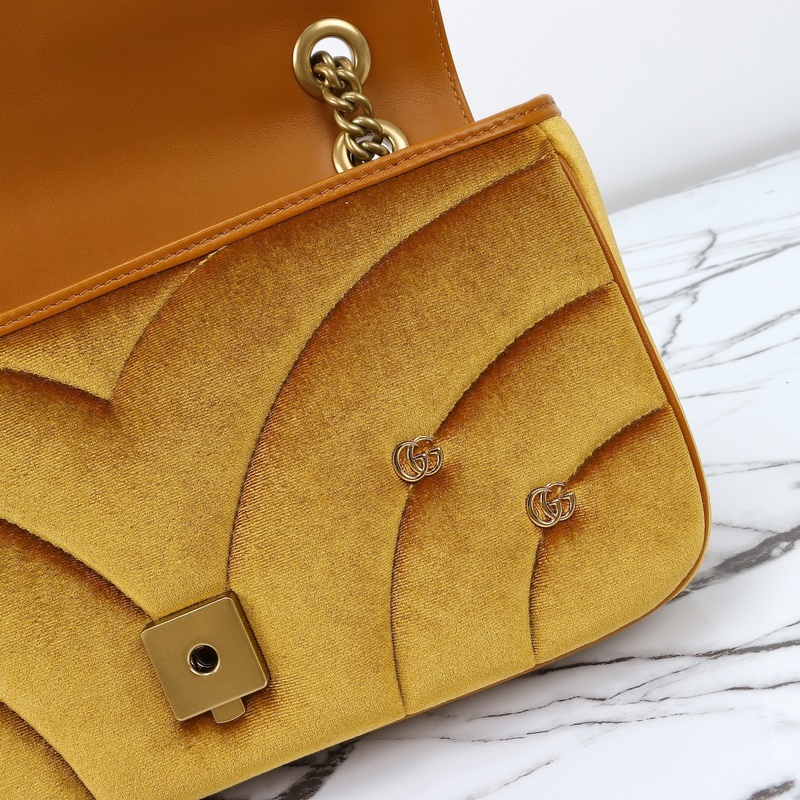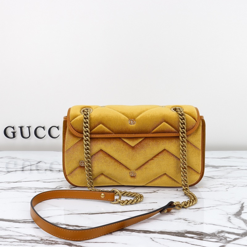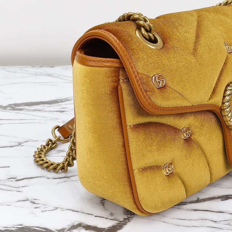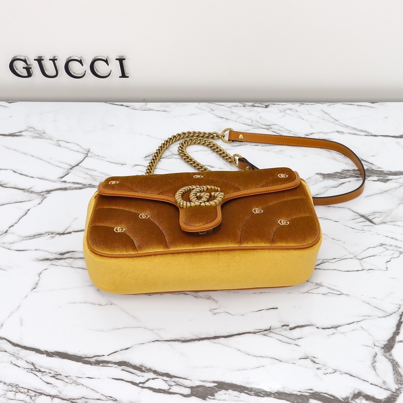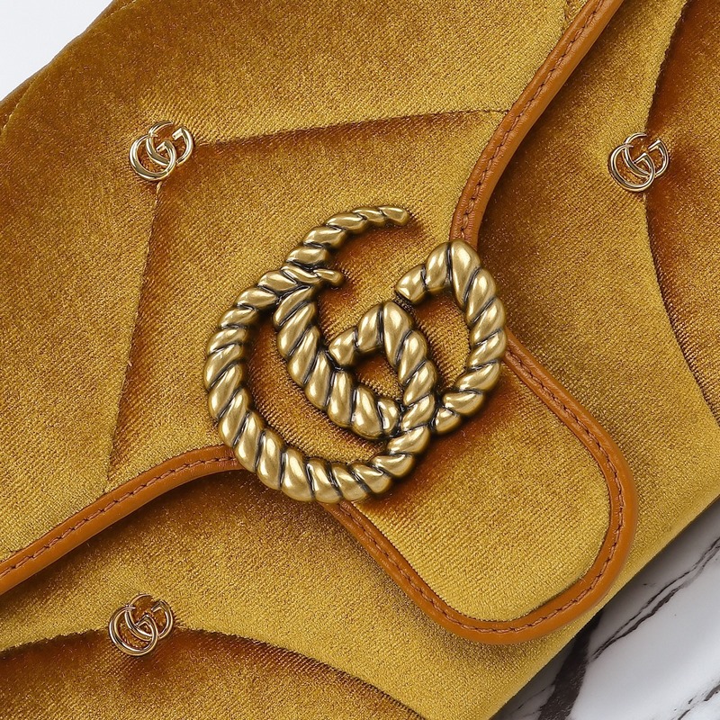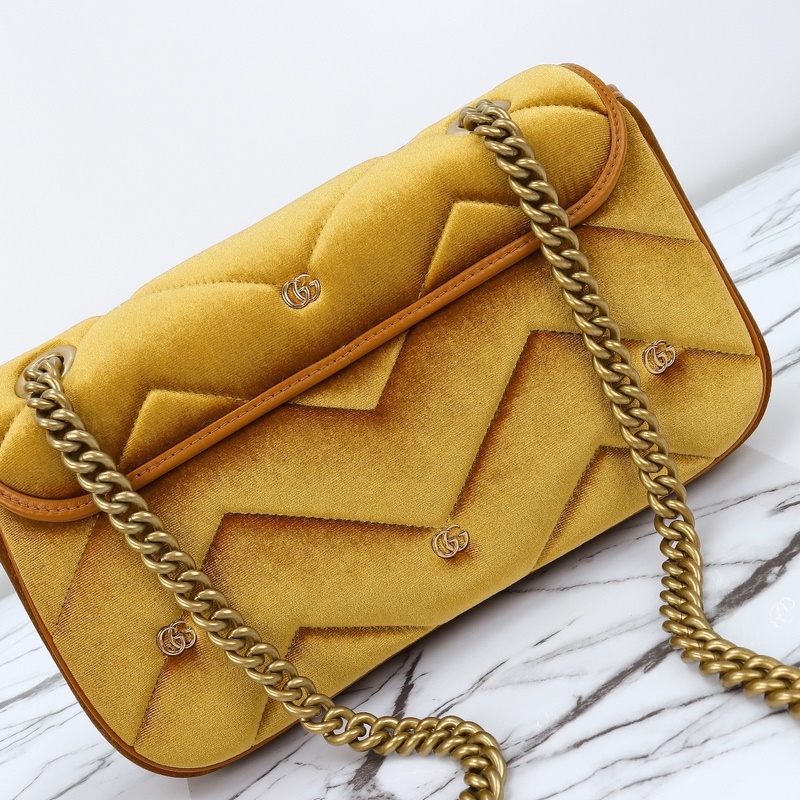 구찌 신상 모델 백화점 품질 실제 물건 모델 번호: 443497 작은 더블 G 짙은 노란색 벨벳 소재 크기: 길이 15 x 폭 26 x 두께 7cm.