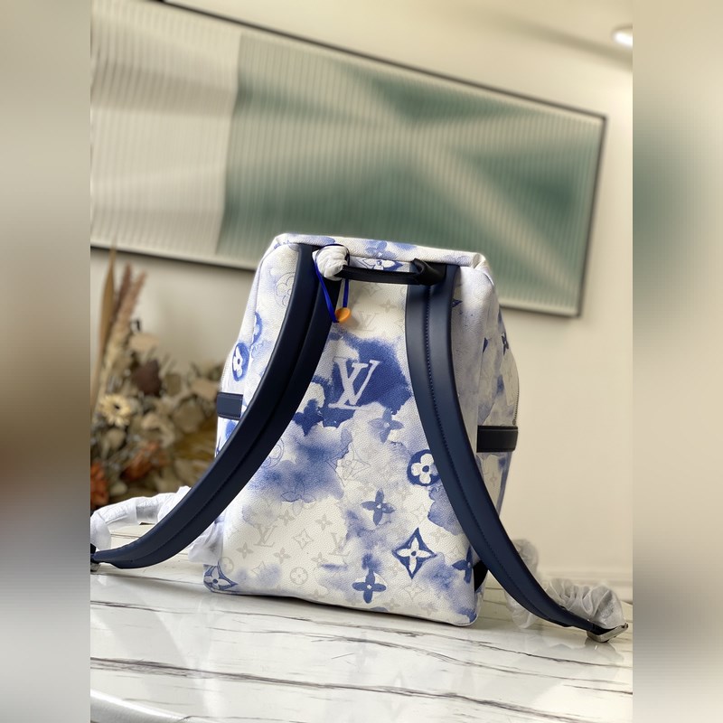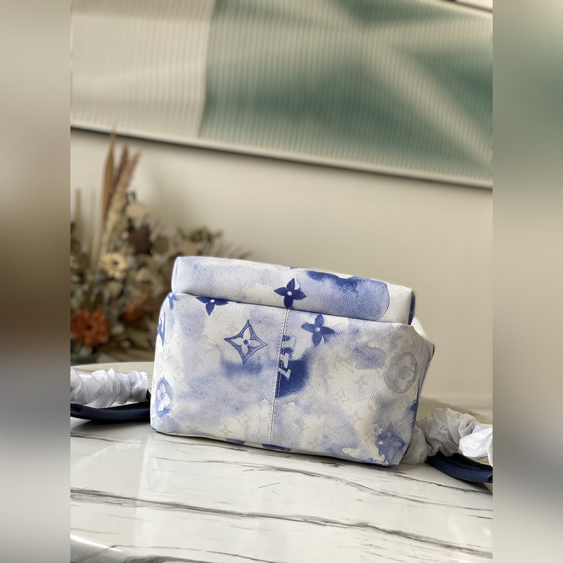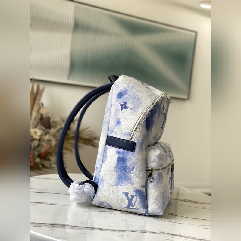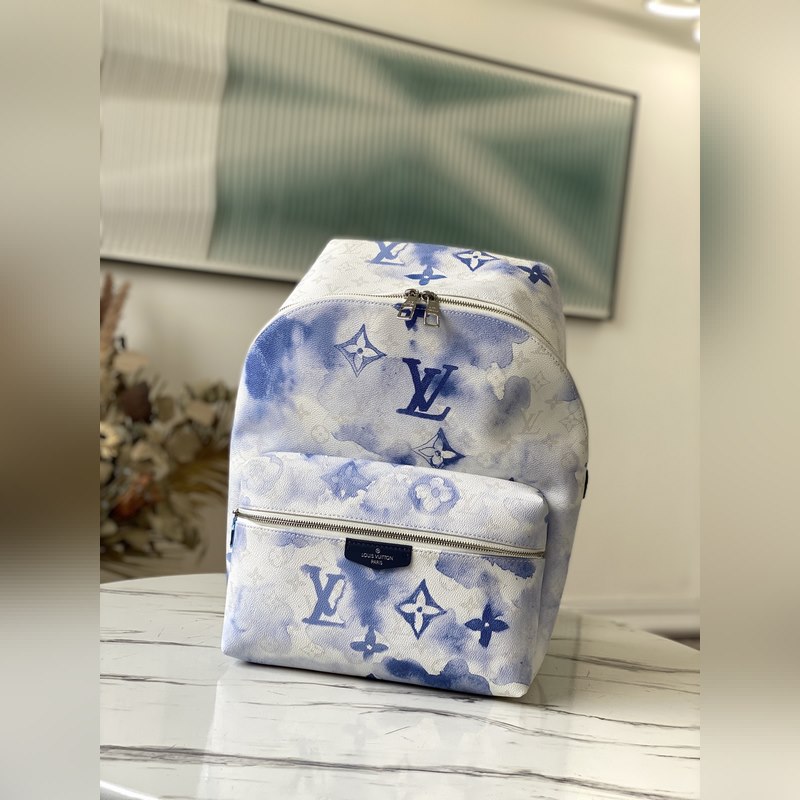 LV 모델 번호: M45760 디스커버리 백팩 몽고메리 꽃과 글자가 몽환적인 수채화로 그려져 있습니다. 학교 가방의 고전적인 디자인에서 영감을 받은 이 가방에는 아이패드 포켓이 있습니다. 길이 조절이 가능한 가죽 어깨끈이 편안한 운반을 보장합니다. 크기: 37 x 40 x 20cm 항목 번호: SG96181180 96181030 9618700