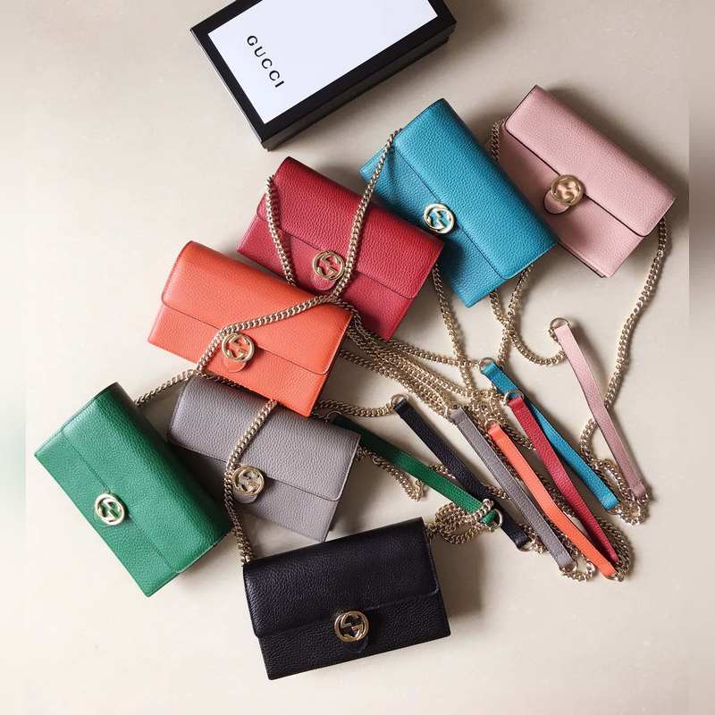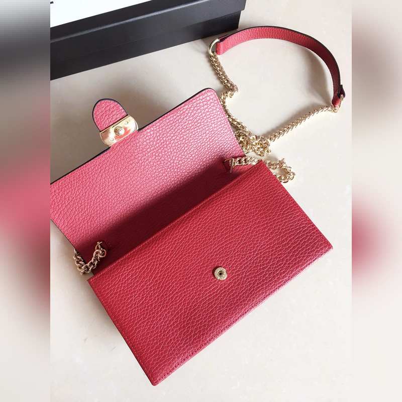 Woc 체인 시리즈 어디에서나 여성을 위한 필수 아이템 ? 거리 사진과 여행 사진에 적합합니다. 크기는 작지만 용량이 커서 휴대폰 현금 립스틱 및 기타 작은 물건을 부담 없이 넣을 수 있습니다. 고품질의 더블 G 하드웨어 로고가 있는 오리지널 공장 하드웨어 및 가죽. 탈착식 어깨 끈은 클러치로 사용할 수 있습니다. 모델 번호: 510314 크기: 20*13*6 색상: 블랙 밝은 빨강 주황 파랑 녹색 분홍 회색 7가지 아름다운 색상.