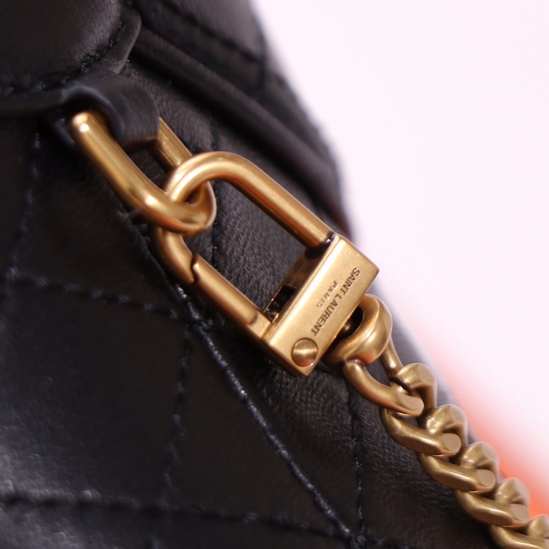 ysl GABY MINI BUCKET 새로운 개비 시리즈의 럭키 버킷 백은 정말 멋집니다! 이 특별한 버킷백의 디자인은 정말 독특합니다. 둥글고 단단한 이 가방은 상단에 작은 덮개가 달려 있어 사생활 보호와 보안에 탁월합니다. 상단의 손잡이와 탈착식 체인 숄더 스트랩을 이용해 다양한 상황에 맞게 여러 가지 방식으로 휴대할 수 있습니다! 하이라이트는 프리즘 패턴의 윤곽을 나타내는 퀼팅 기법과 골드 마이크로 로고로 레트로 스타일의 분위기를 자아냅니다~~~확실히 확인되었습니다: 정말 매력적인 작은 물건입니다 모델: 763961 크기: 19x17x15cm