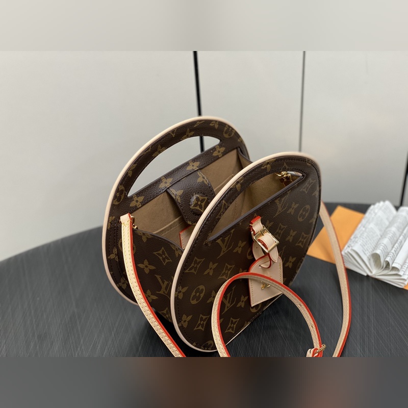 [LV] M47117 노안 여성용 가방 서클 핸드백 시리즈 어라운드 미 핸드백 모노그램 코팅 캔버스로 제작된 이 핸드백은 1920년대 루이 비통 매장과 광고에 사용된 배지인 하우스의 LV 서클 시그니처에서 영감을 받았습니다. 2024년 봄/여름 쇼에서 선보인 이 완벽하게 둥근 가방은 손잡이가 통합되어 있으며 심플하면서도 우아한 외관을 자랑합니다. 작은 크기로 매우 세련된 느낌을 줍니다. 크기: 22.5 x 21 x 7cm
