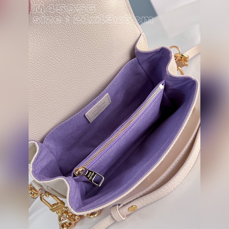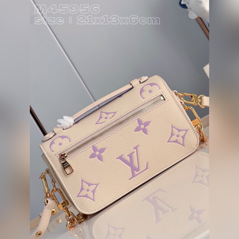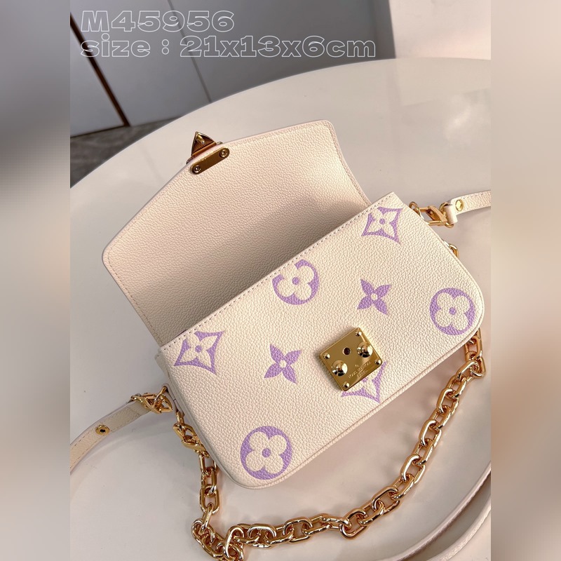 [오프 화이트 색상의 퍼플 프린트 M46596 한정판] 이 오첼트 메티스 이스트 웨스트 핸드백은 모노그램 엠 리인테 양각 가죽으로 만들어져 브랜드의 스타일과 현대적인 요소가 융합된 모습을 보여줍니다. 전통적인 S자형 잠금장치와 탈착식 짧은 체인은 금속 광택이 나며 컴팩트한 구조에는 깔끔한 내부가 포함되어 있습니다. 조절 가능한 어깨 끈으로 도시를 쉽게 돌아다닐 수 있습니다. 크기: 21.5x13.5x6cm