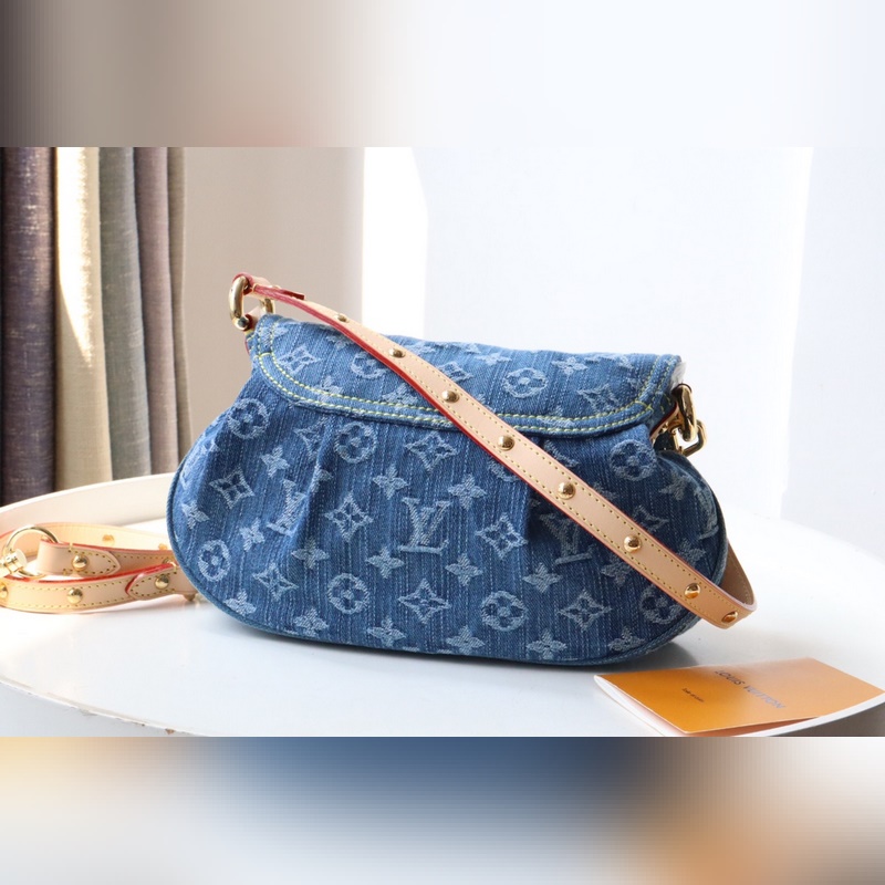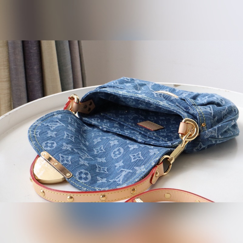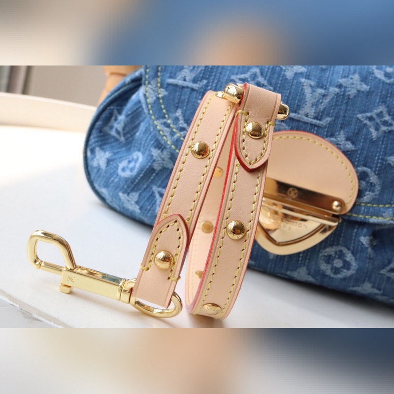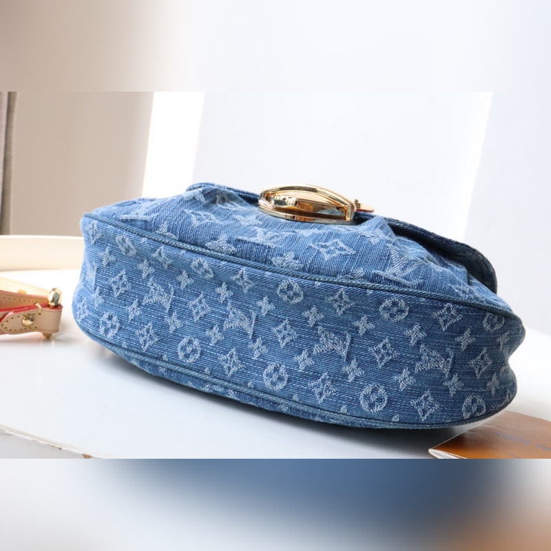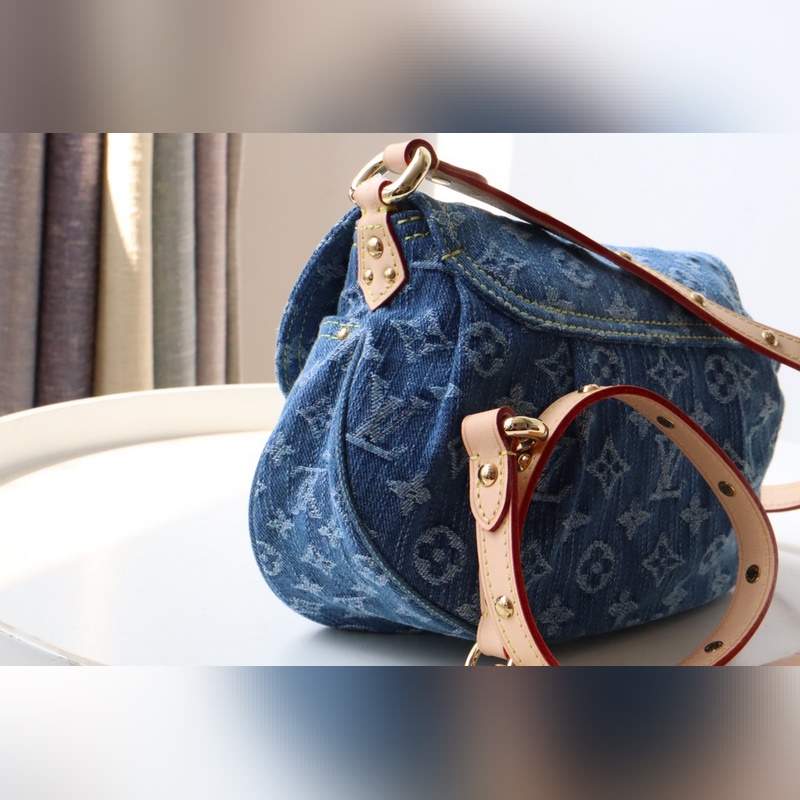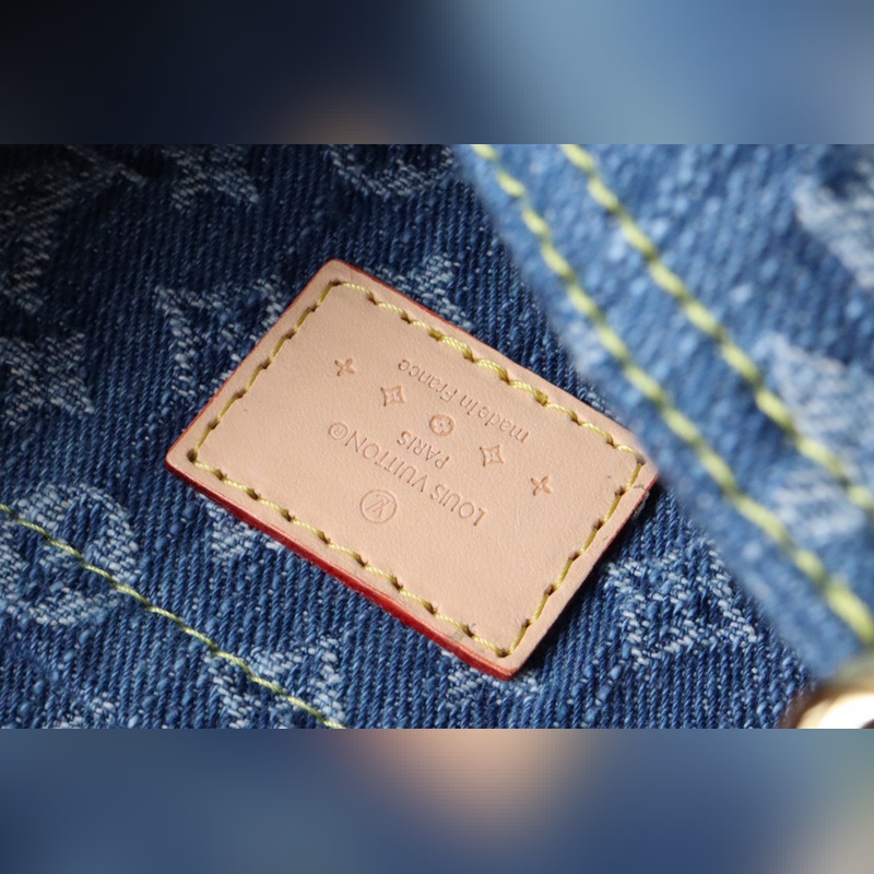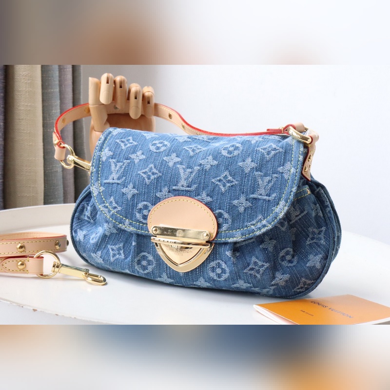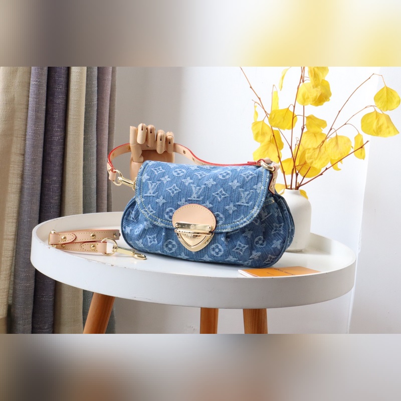 M46829 선셋 핸드백은 모노그램 데님 캔버스를 특징으로 합니다. 이