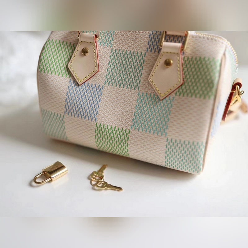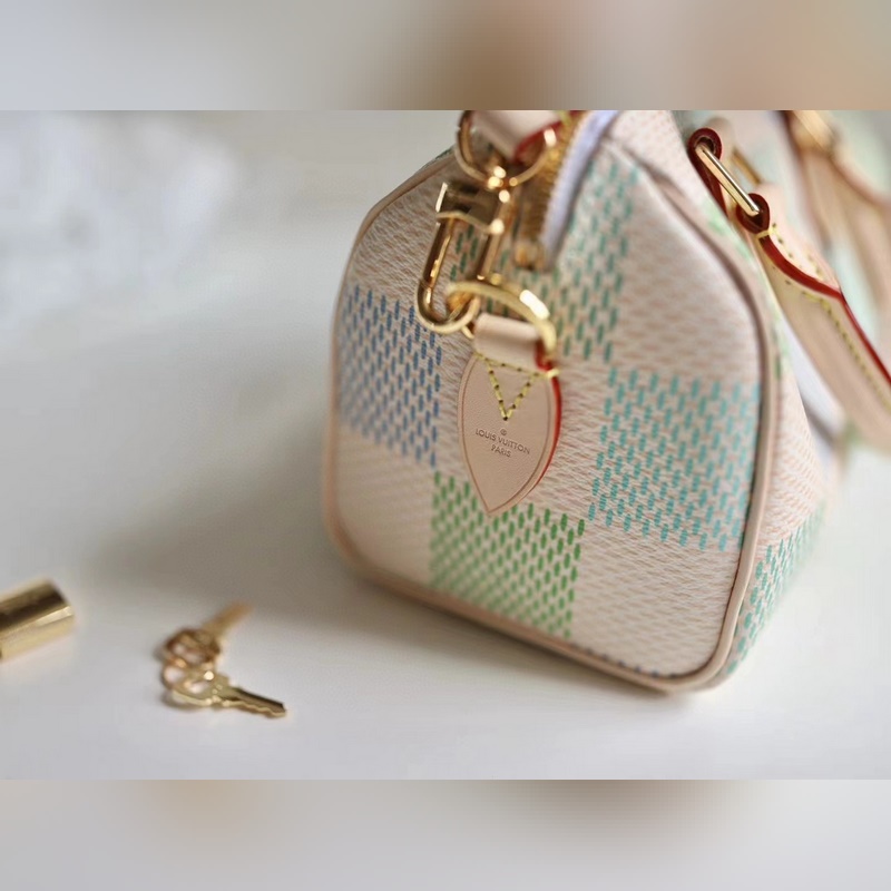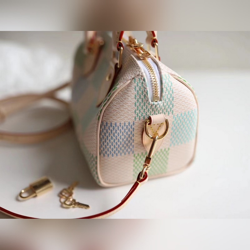 N40515 LV 이 S eedy Bandouli?re 20 핸드백은 다미에 자이언트 캔버스를 파스텔 톤으로 표현하는 디지털 프린트 공정을 기반으로 합니다. 세련된 모양은 브랜드의 클래식한 여행 가방에 영감을 준 것으로 엠보싱 가죽 손잡이와 어깨에 메거나 몸에 걸칠 수 있도록 탈부착 및 길이 조절이 가능한 어깨끈이 있습니다. 20.0 x 15.0 x 12.5cm(가로 x 세로 x 높이) 다미에 자이언트 코팅 캔버스 가죽 트림 트윌 안감 금속 부품 더블 지퍼 잠금 내부 포켓에 인쇄 자물쇠 스마트폰 짧은 지갑 헤드폰 열쇠를 넣을 수 있습니다. 어깨끈: 탈부착 가능 길이 조절 가능 손잡이 길이: 48.0cm 조절 가능한 스트랩 길이: 53.0cm 핸들: 더블 핸들