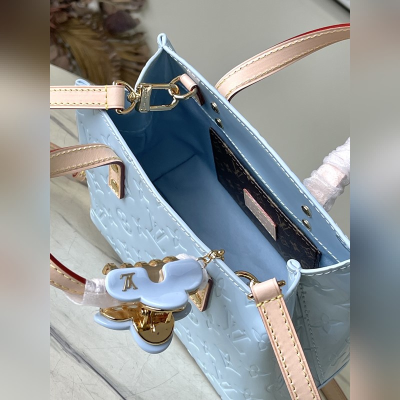 LV M24144 Blue 이 작은 가방은 반짝이는 모노그램 베미스 가죽