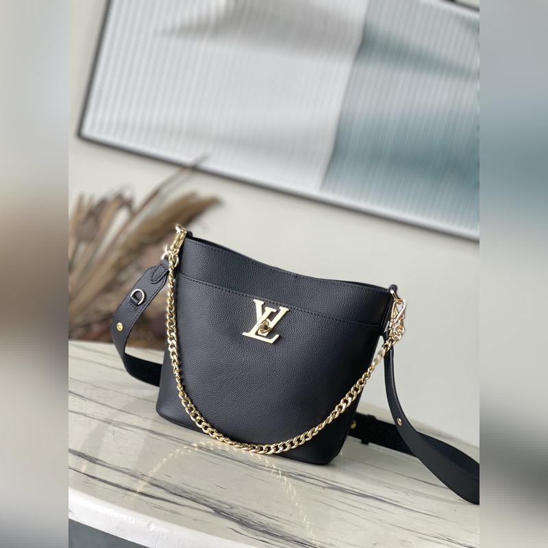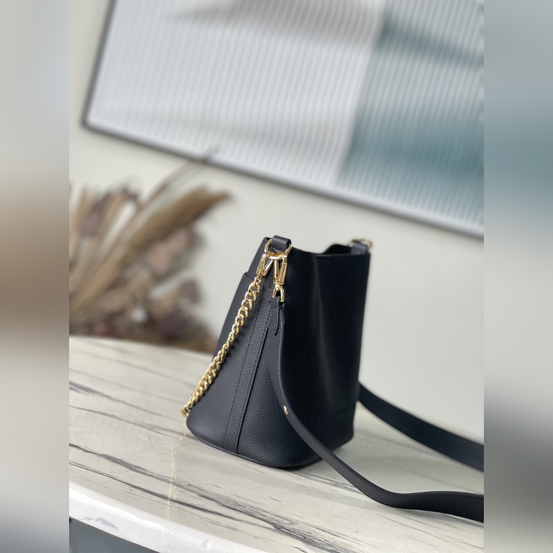 LV M24006 블랙 락 앤 워크 버킷백은 가볍고 편안한 그레인 소가죽