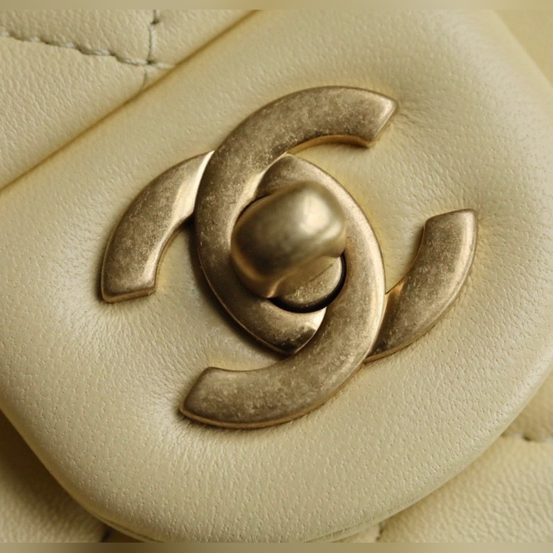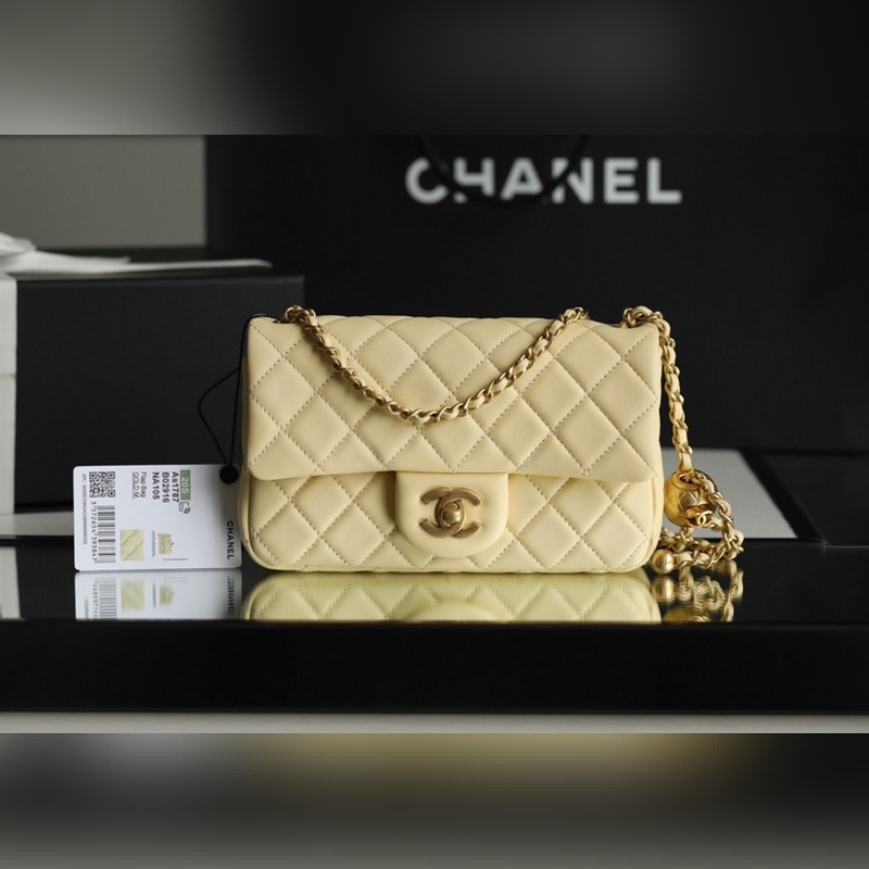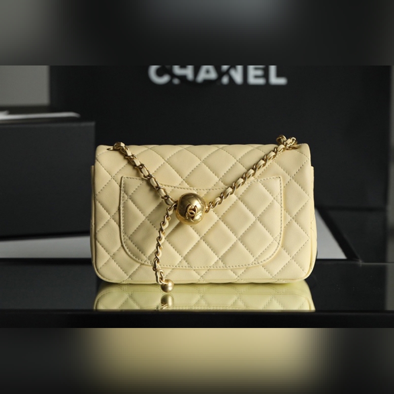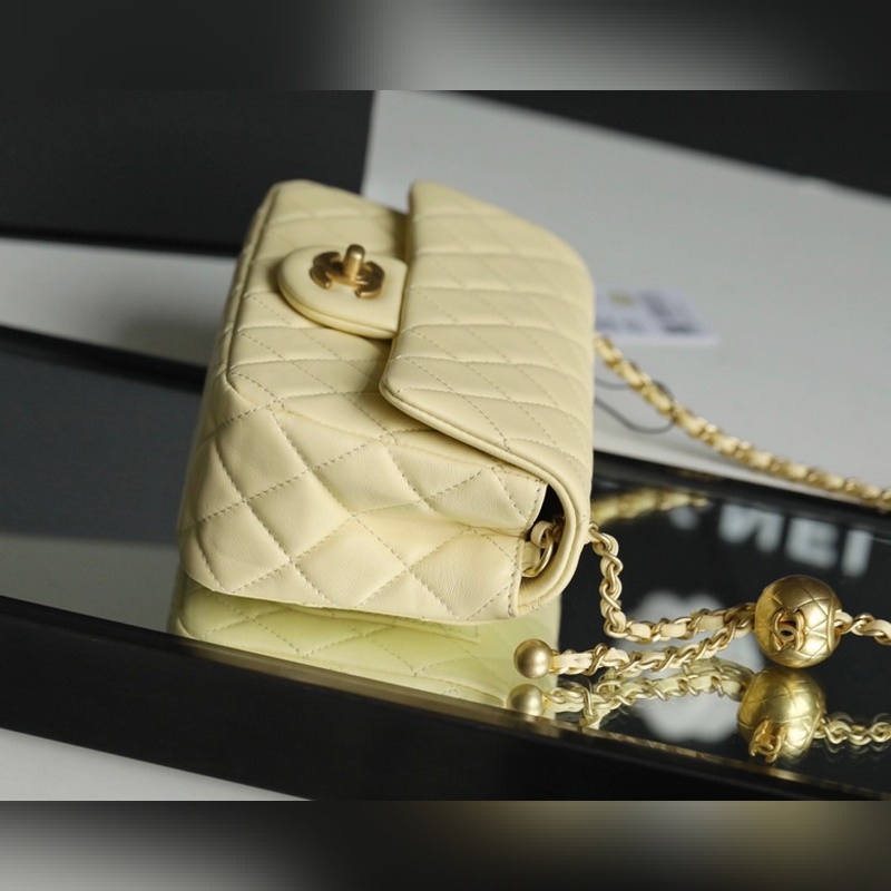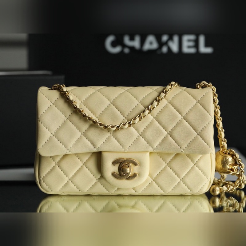 새롭고 오래된 철제 친구들 서둘러 서두르세요! 불타는 듯한 골든 볼 커버 백 치킨 옐로우 양가죽 커버 가방 Evolution Classic Fla 혁신적인 해석 크고 복고풍의 금도금 하드웨어 그리고 가장 가장... 마름모 패턴과 작은 금속 볼이 있는 눈길을 끄는 어깨 스트랩 그리고 체인의 길이는 조정할 수 있습니다! 크기: *
