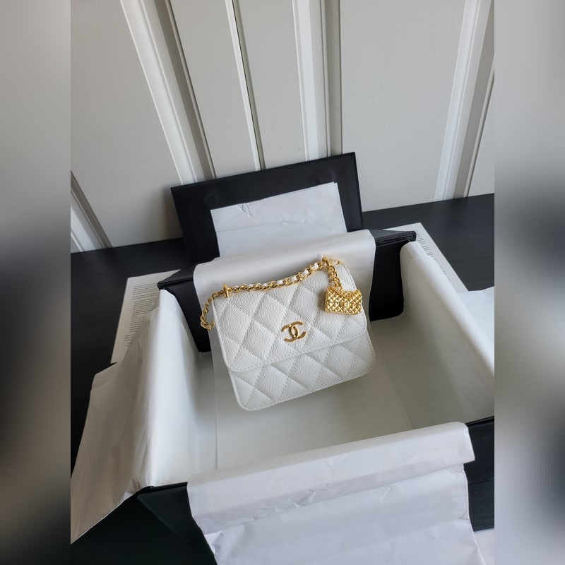 재고 있음 재고 있음 chanel23s 한정판 최고급 맞춤 제작 작은 오르간 펜던트 작은 쓰레기 봉투 고급 볼이 달린 소가죽 대각선 크로스바디 백 A 3317 크기: 13*10*5cm
