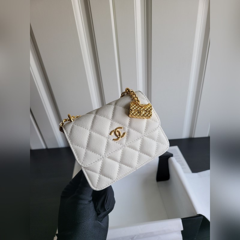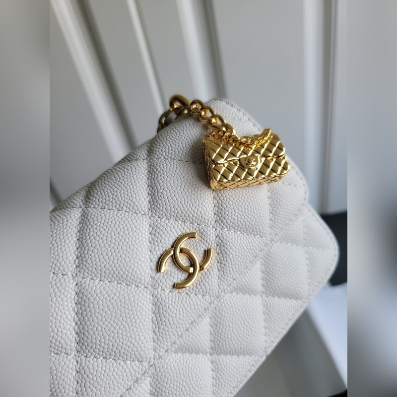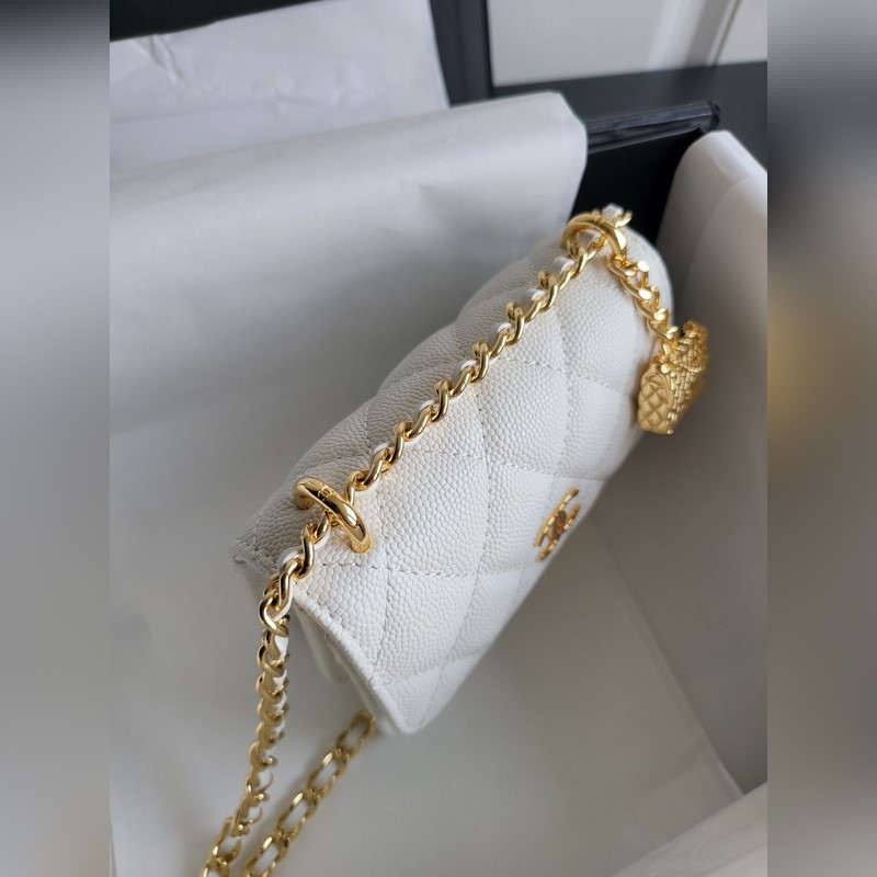 재고 있음 재고 있음 chanel23s 한정판 최고급 맞춤 제작 작은 오르간 펜던트 작은 쓰레기 봉투 고급 볼이 달린 소가죽 대각선 크로스바디 백 A 3317 크기: 13*10*5cm