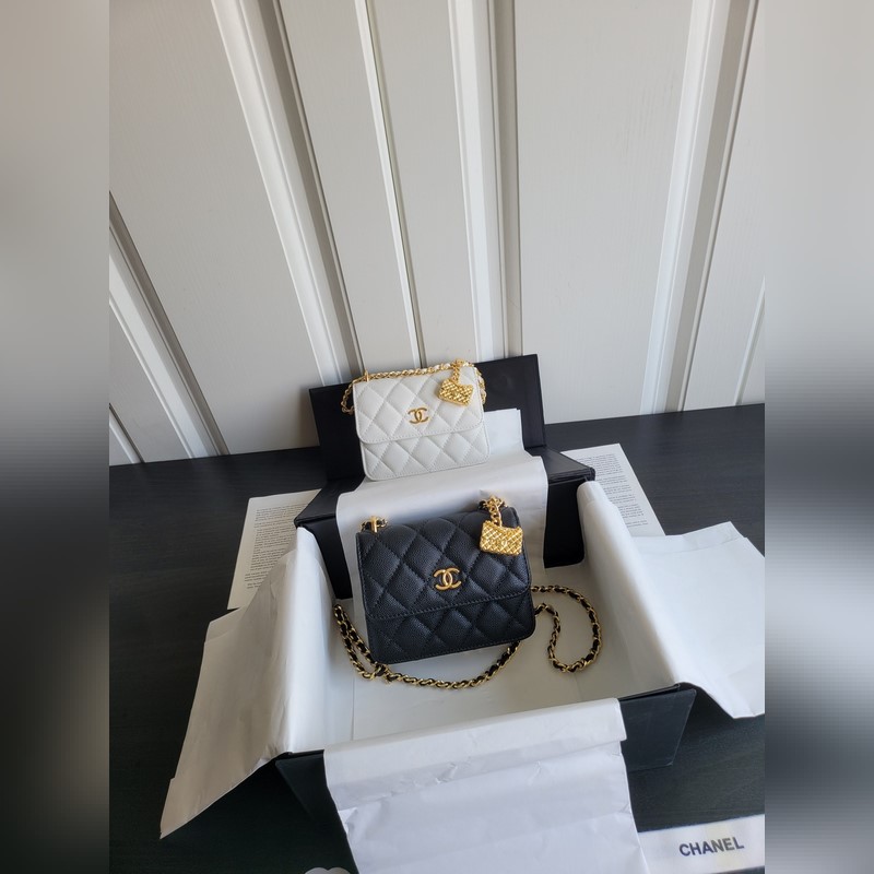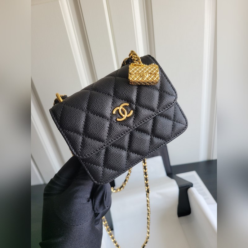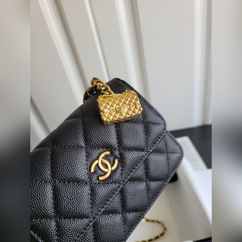 재고 있음 재고 있음 chanel23s 한정판 최고급 맞춤 제작 작은 오르간 펜던트 작은 쓰레기 봉투 고급 볼이 달린 소가죽 대각선 크로스바디 백 A 3317 크기: 13*10*5cm
