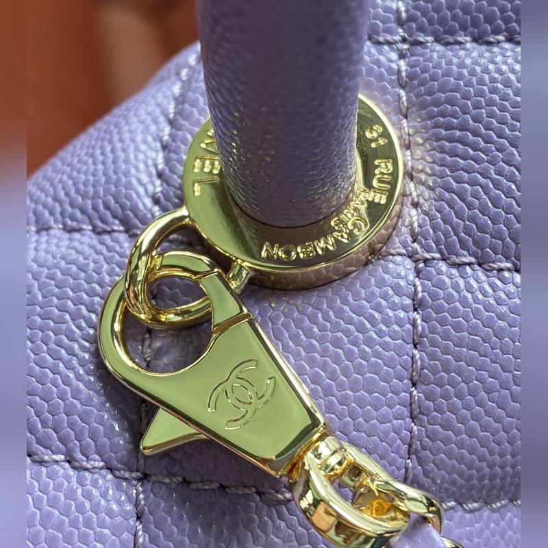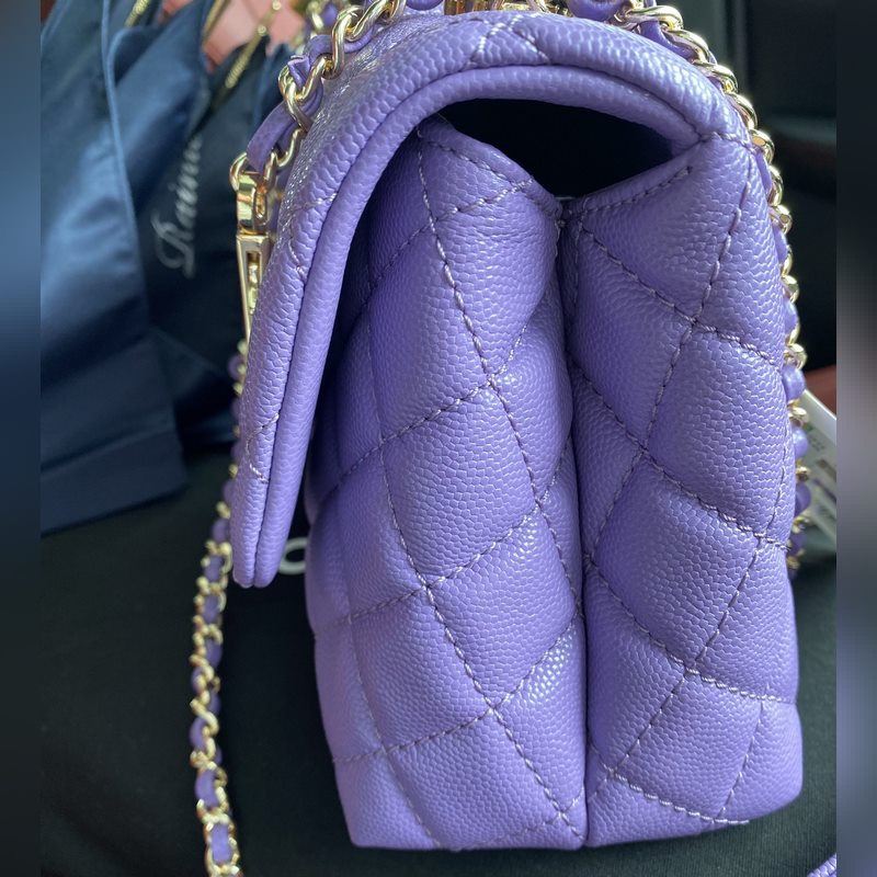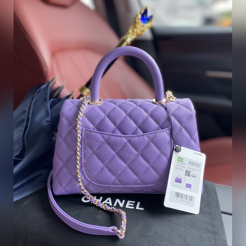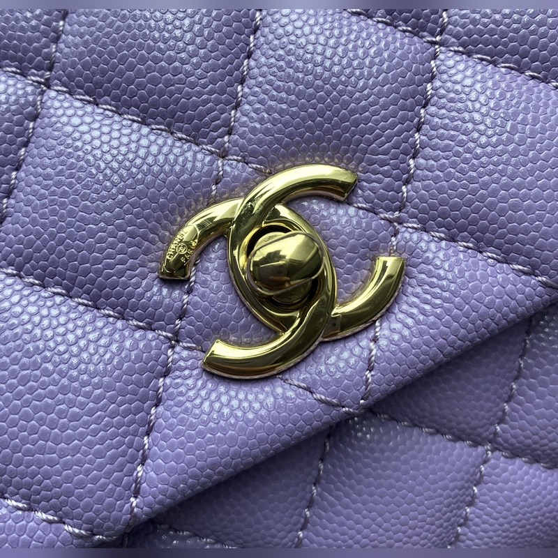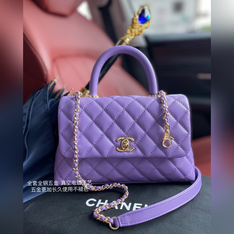 보라색 발레리나와 보라색 수입 소가죽 14K 금 진공 도금 모든 철제 하드웨어 풀 세트 오리지널 싱글 고품질 버전 입 커버/핸드백 작은 사이즈의 매운 닭고기 계절 한정 코코핸들 클래식은 거의 왕 폭탄입니다. 매장에서 품절됨 밝은 금색 버클. :92990 :24*14*10