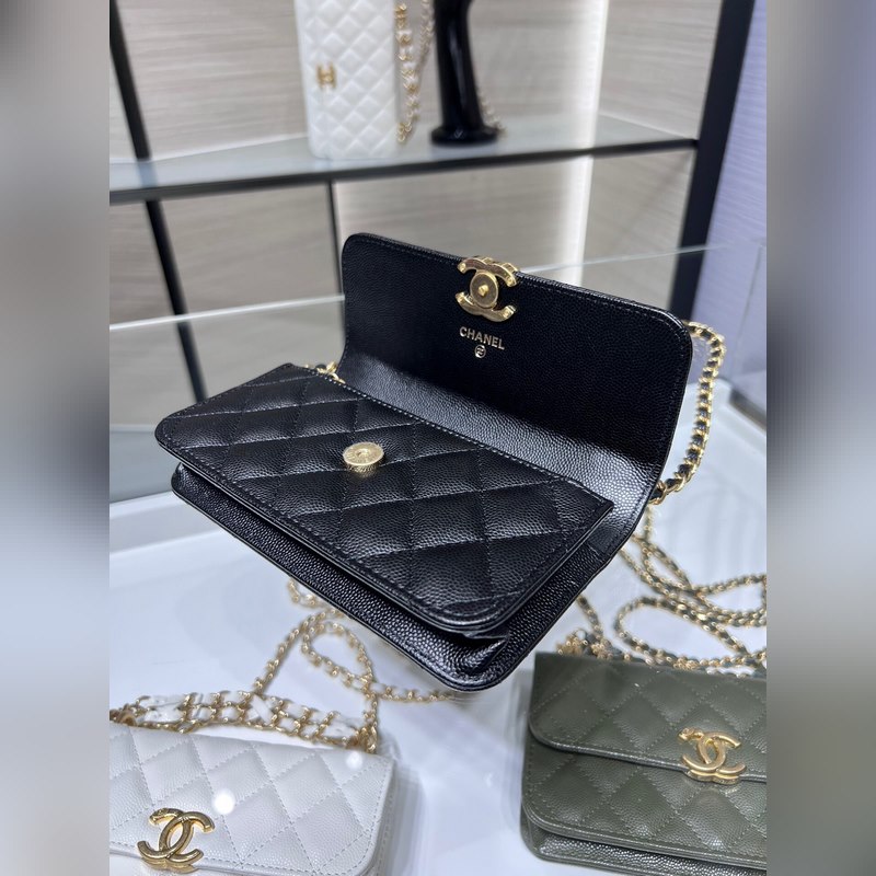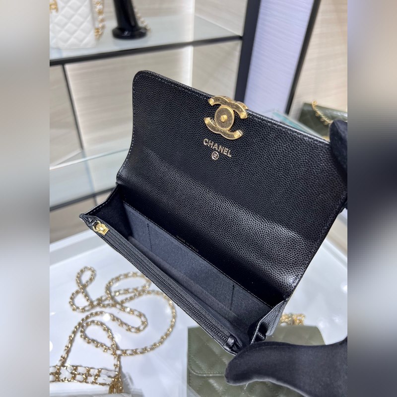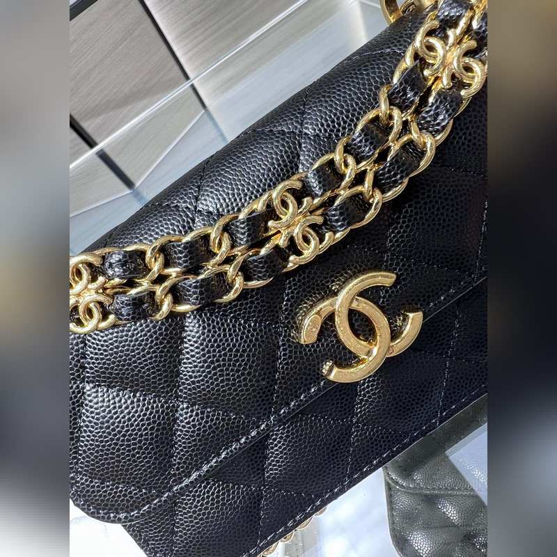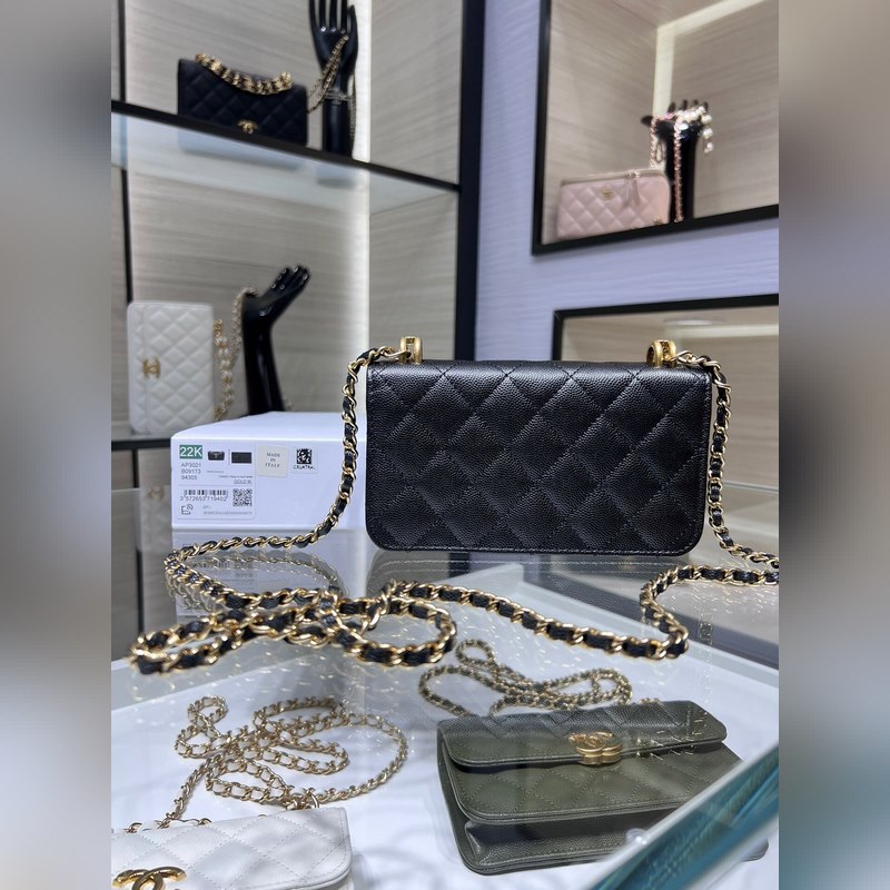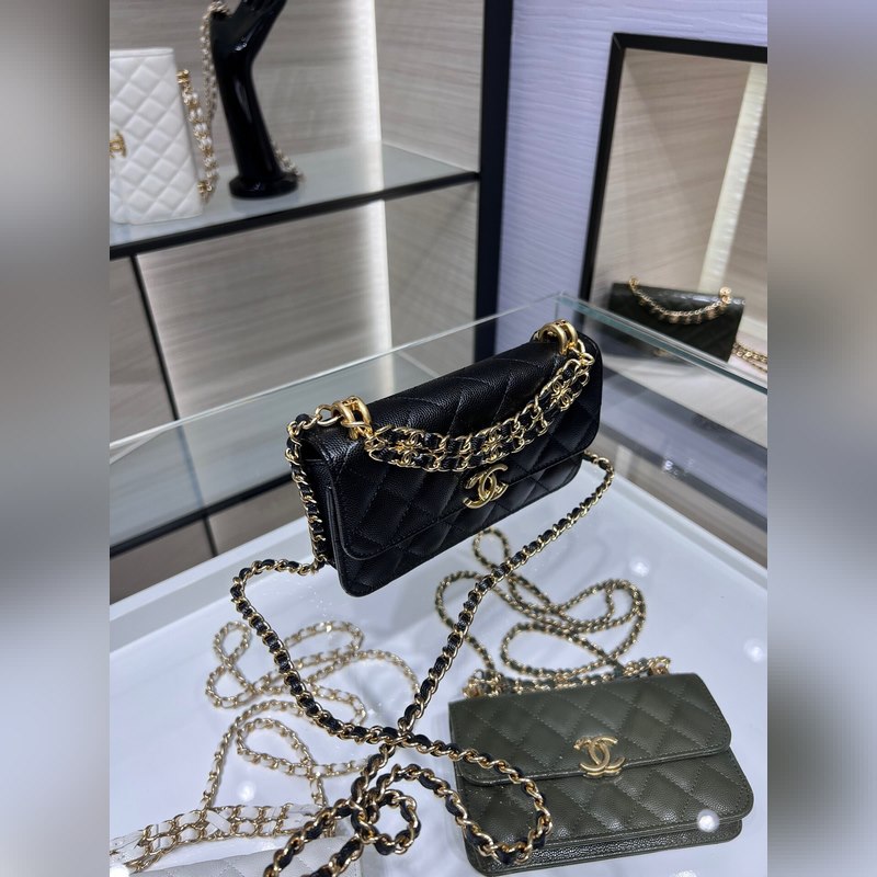 샤넬 22K 신제품 바게트 백 더블 체인 폰 백 캐비아는 손에 들고 다