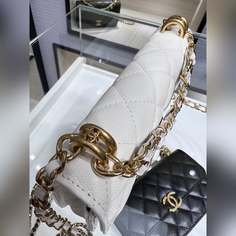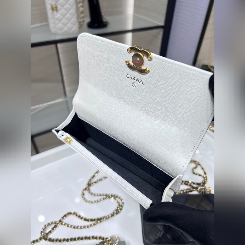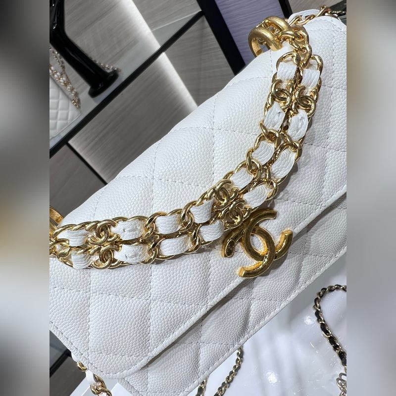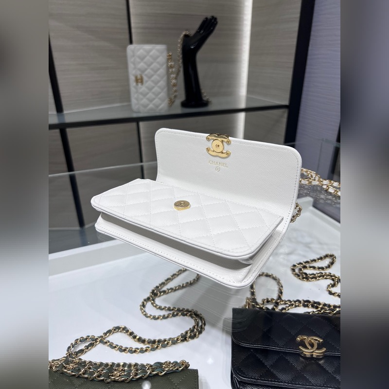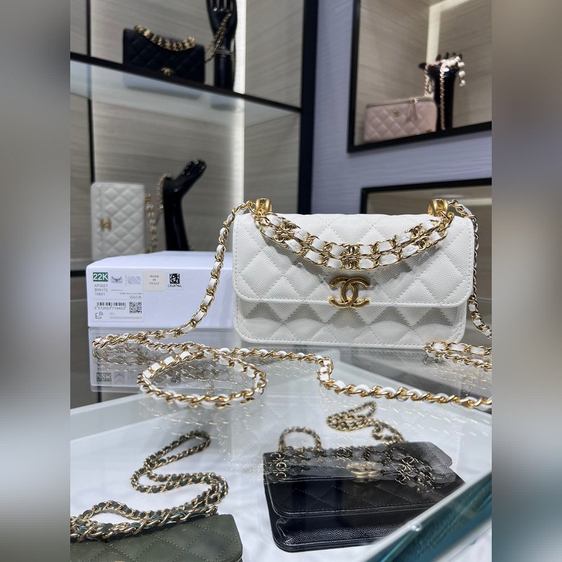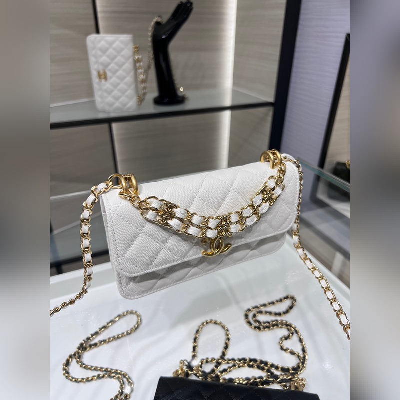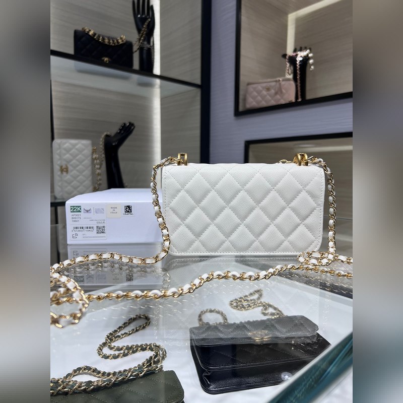 샤넬 22K 신제품 바게트 백 더블 체인 폰 백 캐비아는 손에 들고 다