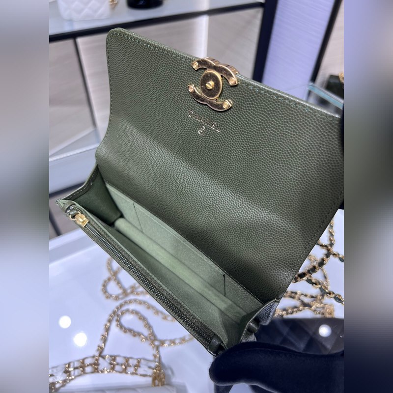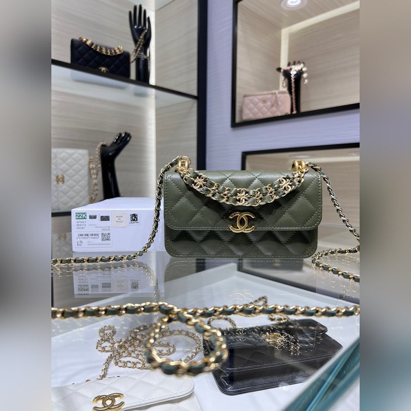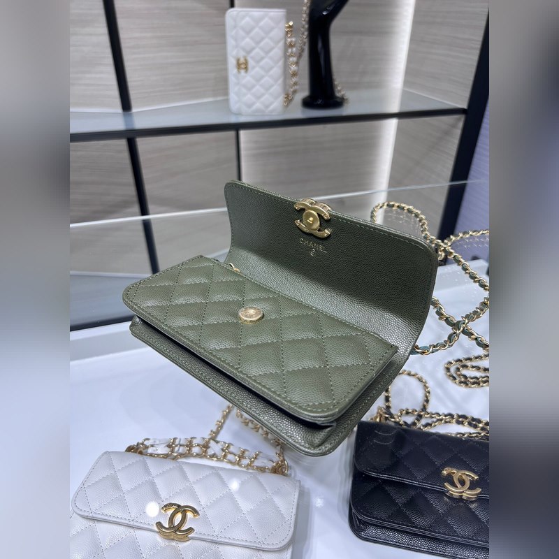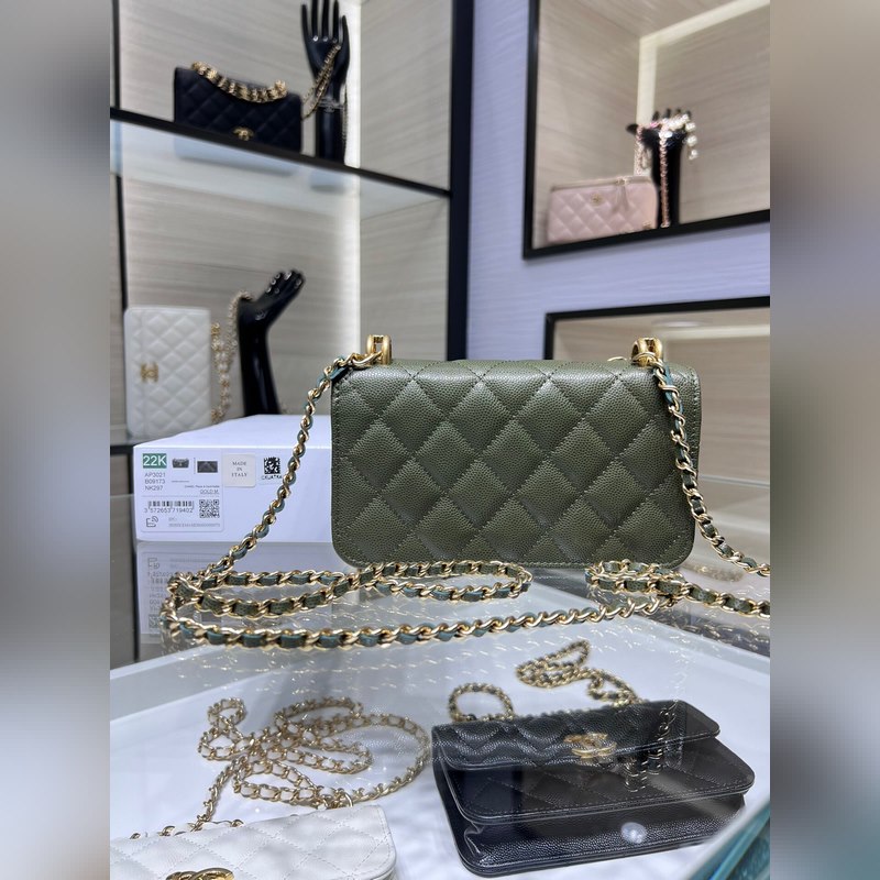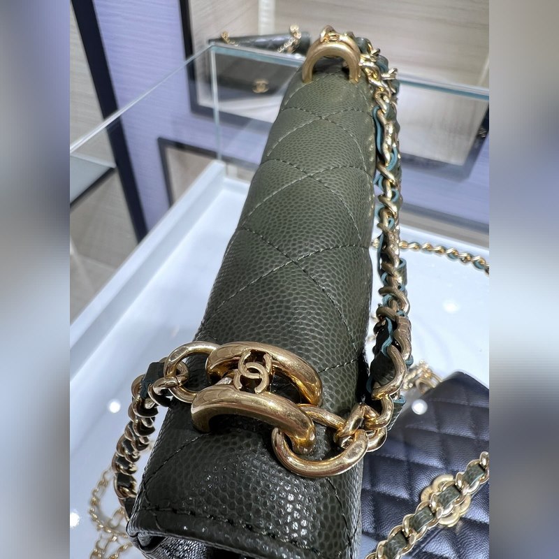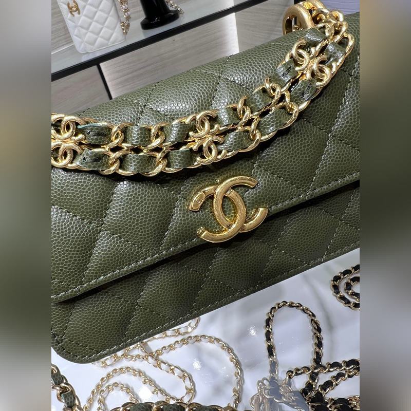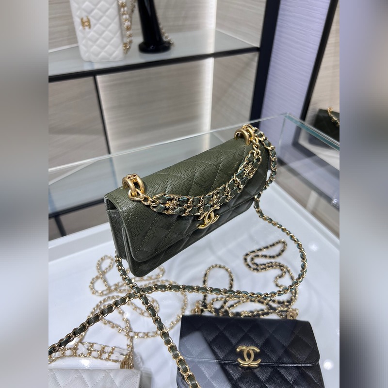 샤넬 22K 신제품 바게트 백 더블 체인 폰 백 캐비아는 손에 들고 다