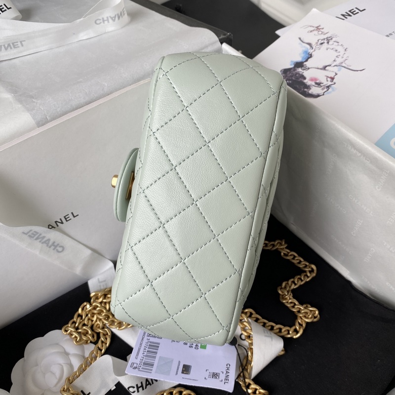 옅은 파란색 샤넬 카멜리아 조정 버튼 시리즈 샤넬 23s 소형 AS40