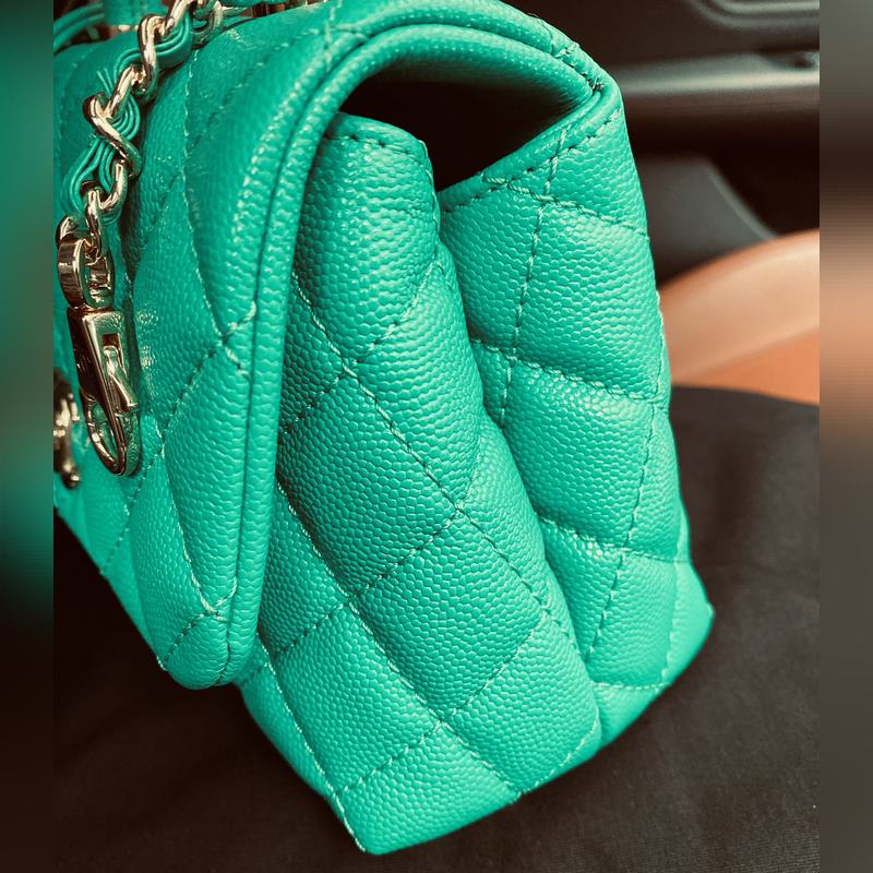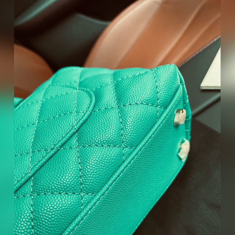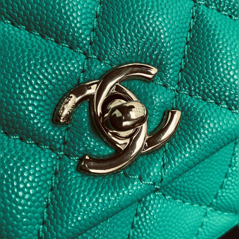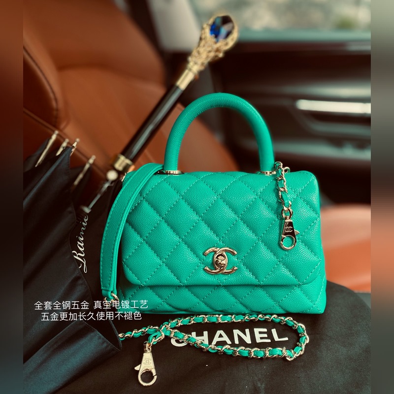 실제 제품 사진. 베로나 그린 톤 수입 소가죽 14K 금 진공 도금 모든 철제 하드웨어 세트 오리지널 싱글 고품질 버전 입 커버/핸드백 시즌의 매운 닭고기 미니 사이즈 코코핸들 클래식 모델은 거의 왕 폭탄 카운터에서 품절 라이트 골드 버클. : AS2215 : *