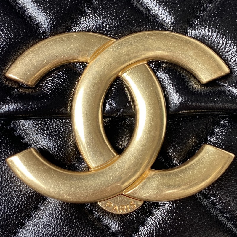 Chanel 23 숨겨진 모델 빈티지 블랙 앤 골드 빅 로고 CHANEL