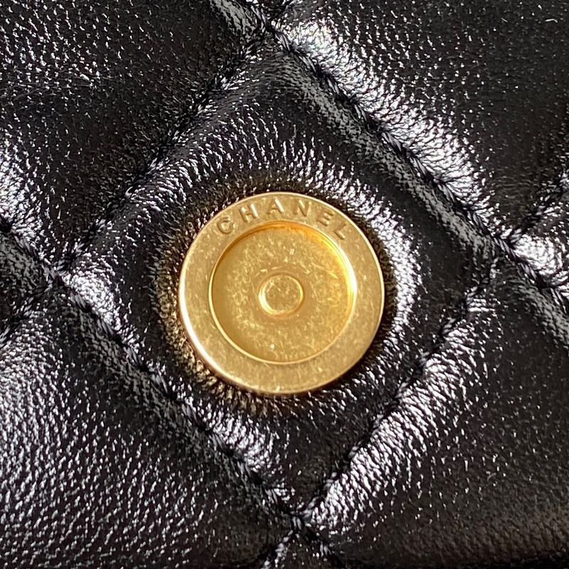 Chanel 23 숨겨진 모델 빈티지 블랙 앤 골드 빅 로고 CHANEL23 소형 AS3854 숨겨진 레트로 블랙과 골드 빅 로고! 더블 C 슈퍼 미니 스퀘어 팻 조금 귀여움 중요한 점에 주의하세요: 휴대폰을 넣을 수 없다면 귀여운 샤넬의 큰 로고와 복고풍 왁스 가죽 느낌만 넣을 수 있습니다! 하드웨어는 앤티크한 느낌을 주고 플랩은 자석으로 되어 있어 모든 소녀들이 필요로 하는 많은 작은 물건을 담을 수 있습니다. 뒷면에 작은 카드 주머니가 있고 체인을 감아 크로스바디 백이나 허리 가방으로 만들 수 있습니다. 립스틱 자동차 열쇠 파우더 등. 용량은 일상적인 사용에 충분하지만 휴대폰을 넣을 수는 없기 때문에 매우 비용 효율적입니다. 이 모델이 온라인에 출시된 것은 이번이 처음인데 저는 이런 큰 로고 금속 라벨에 거부감이 없습니다! 너무 멋져요! 너무 좋아요! 크기: 11 x 14.5 x 3.3 cm