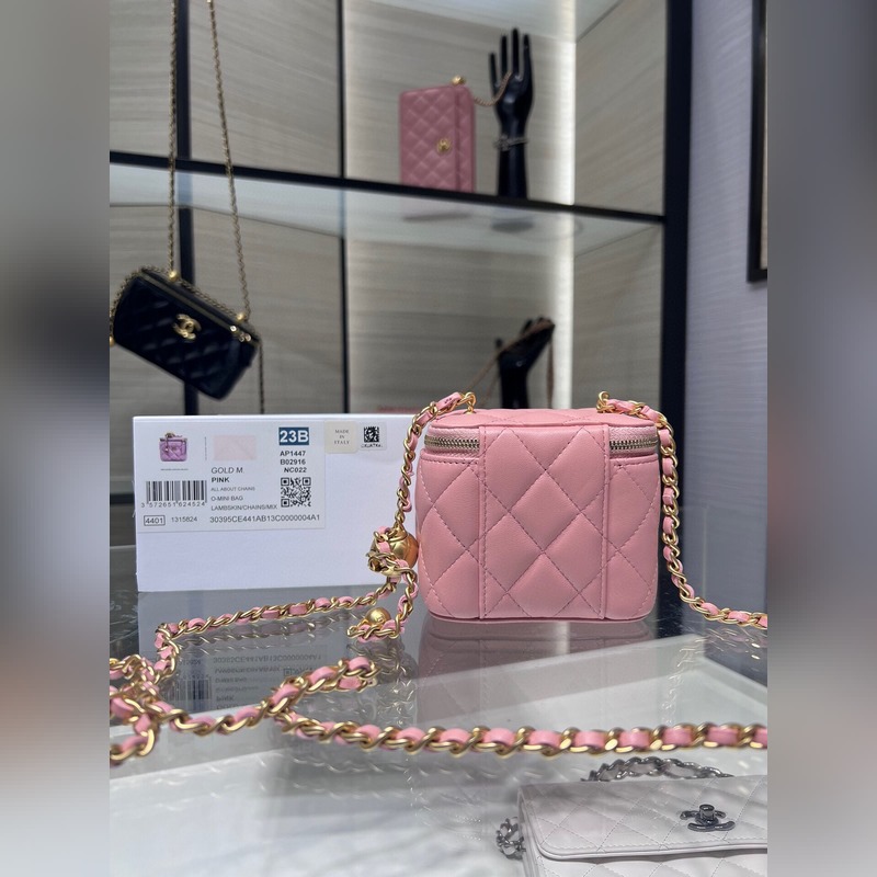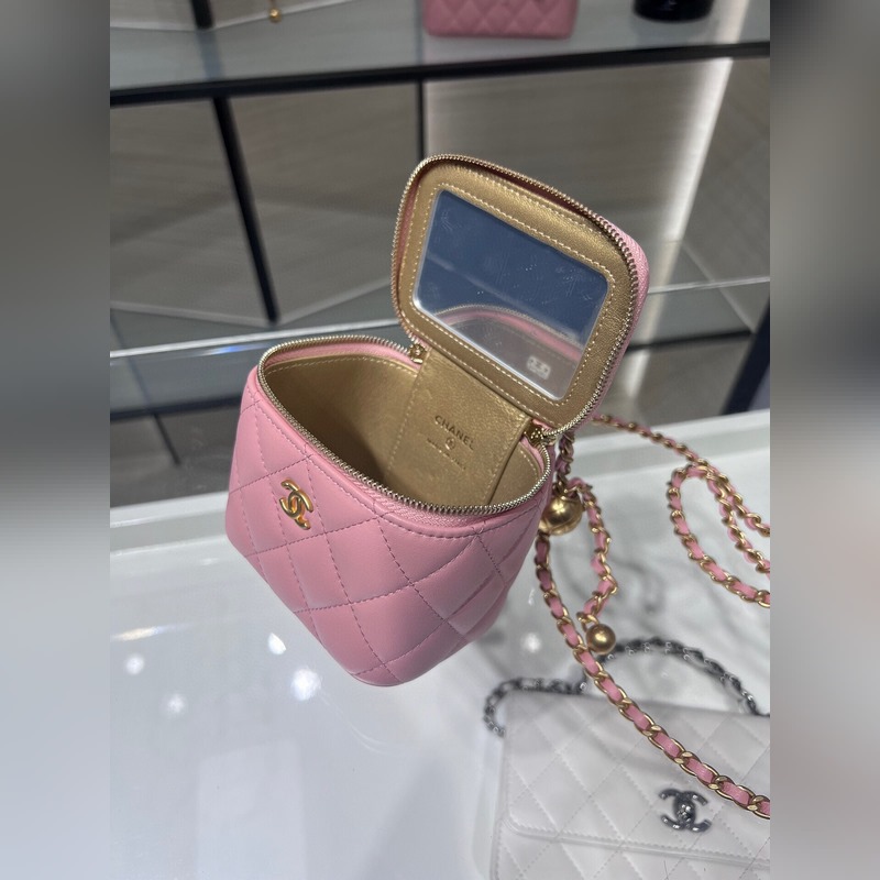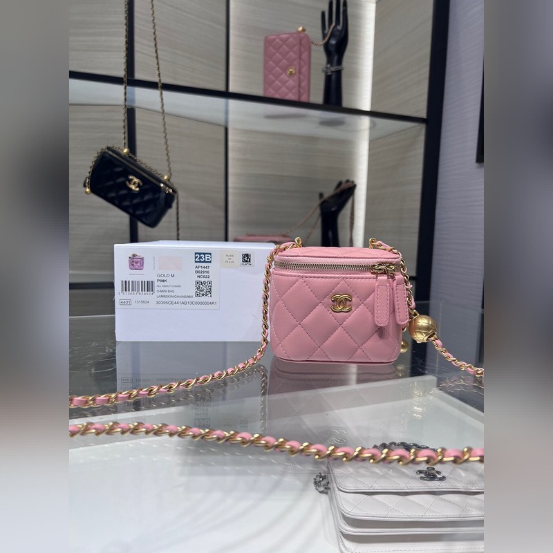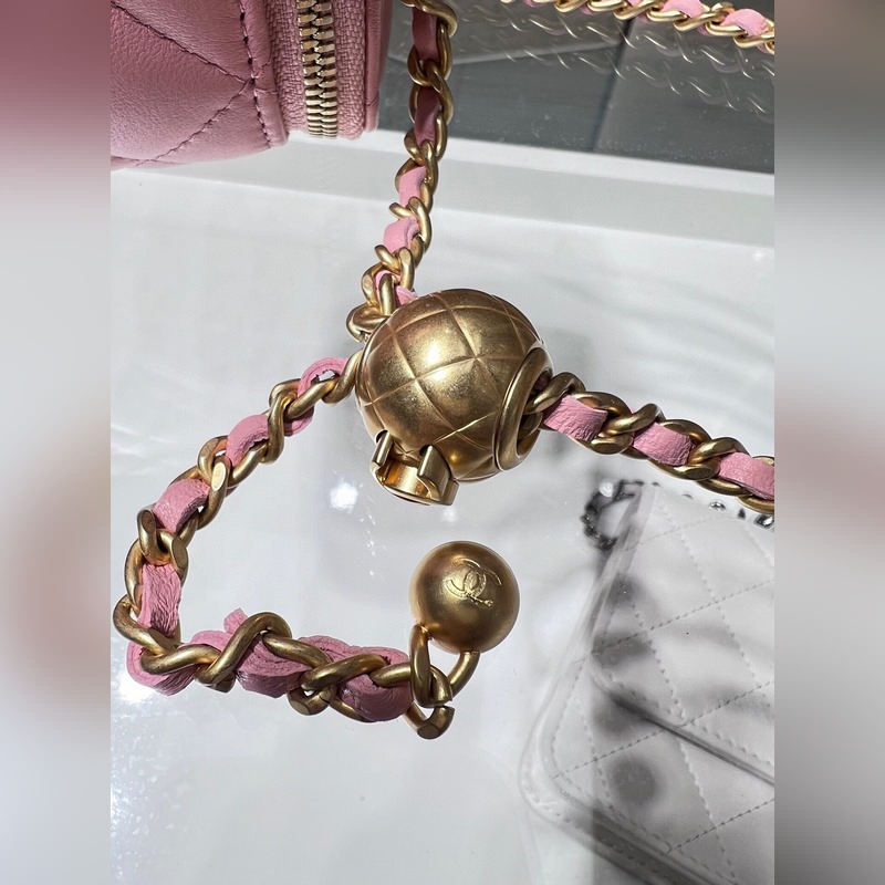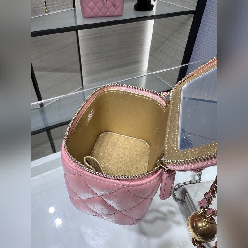 샤넬 22C 신제품 신색상 소형 상자 길이 조절 가능한 체인 작은 금색 공 양가죽 첫눈에 반해버렸습니다. 가죽 안감 내부에 작은 거울이 있습니다. 크기: 8.5cmX11cmX7cm A 1447Y