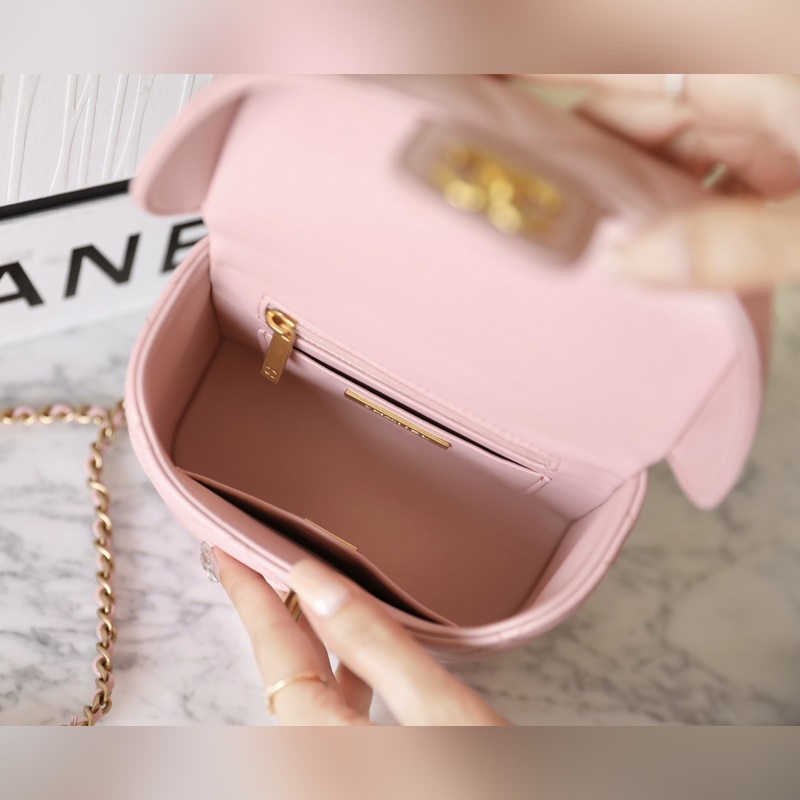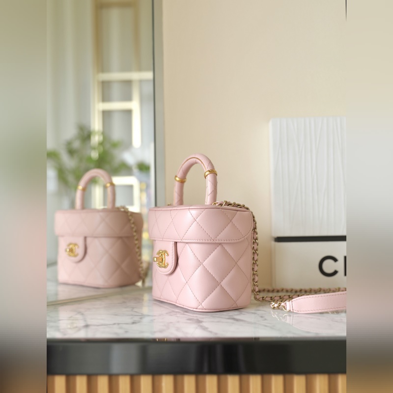 새로운 봄/여름 컬렉션 작은 반지 화장품 가방 연분홍색 소매가: 이용 가능: 누가 이 메이크업 파우치를 거절할 수 있겠습니까? 특별한 복고풍 더블 버클과 손목에 두 개의 링이 달려 있습니다. 독특하고 고급스러우며 거의 예술 작품에 가깝습니다. 하드웨어: 두꺼운 도금된 빈티지 골드 가죽: 고급 양가죽 크기: *. *