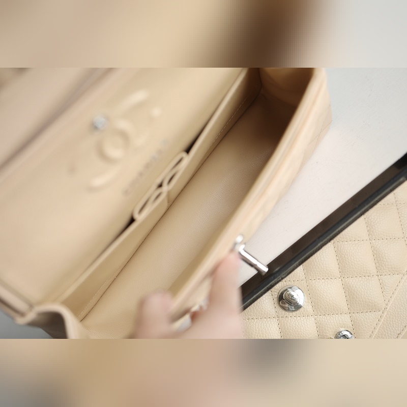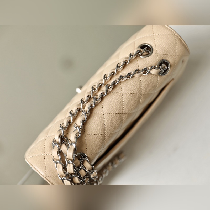 새로 출시된 스몰 클래식 시리즈 아몬드 캐비어 가죽의 특징적인 거친