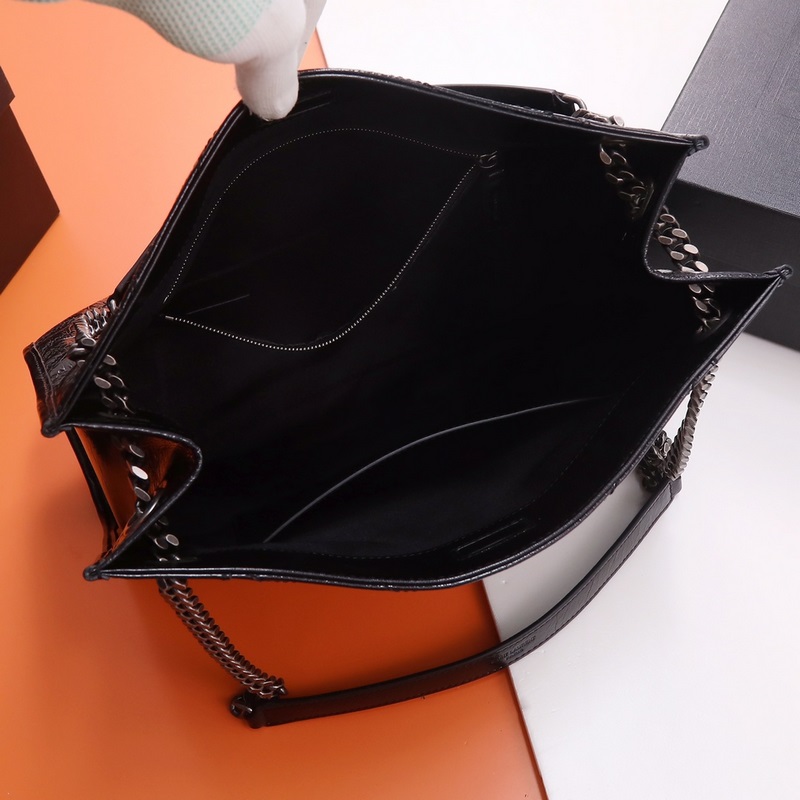 [독점적인 실제 배경] 특별한 원피스 _ 이탈리아에서 수입한 주름진 기름칠 소가죽 올 블랙 메탈 로고 정교한 장인 정신! 가방 중앙에 자석 걸쇠가 있어 사용 시 안전을 보장합니다. 내부에는 지퍼 수납공간과 휴대폰과 카드 지갑을 넣을 수 있는 개방형 슬롯 디자인이 있어 큰 가방이라 물건을 찾지 못하는 문제 없이 쉽게 꺼내서 사용할 수 있습니다. 가방은 매우 가볍고 용량이 넉넉하여 서류 가방 여행 가방 쇼핑 가방 또는 엄마 가방으로 사용할 수 있어 매우 실용적입니다! 모델: 577999 크기: 33x27x11.5cm