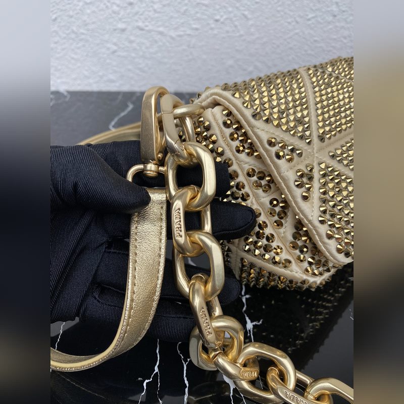 [최고의 오리지널 싱글] 2024년 신상 크리스탈 백 1BD329 이 모델은 모조 크리스탈과 스티치로 만든 바디에 화려한 삼각형 패턴이 엮인 미니 핸드백으로 브랜드의 장인 정신을 반영합니다. 체인 핸들 디자인은 보석의 세계를 연상시킵니다. 가방에 반짝이는 요소가 돋보이고 앞면에는 금속 삼각형 로고가 장식되어 있습니다. 마음에 드시면 서둘러 구입하세요. 크기: 길이 17cm*높이 11.5cm*너비 6cm