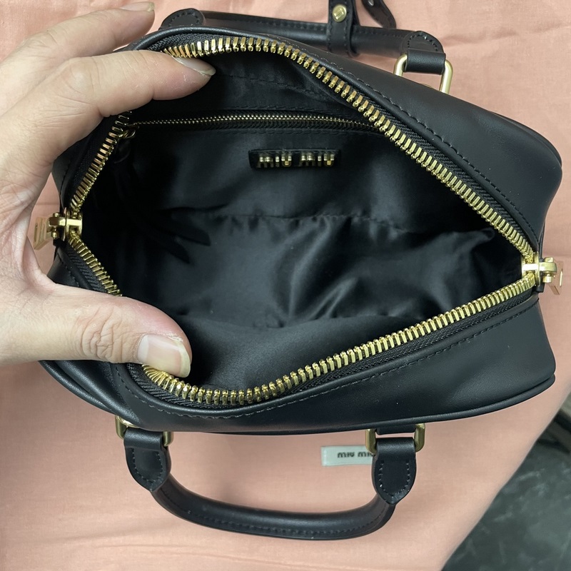5BB142 미우의 새로운 볼링 가방 공식 웹사이트의 주요 프로모션 올해의 절대적인 폭발적인 스타일 최고급 수입 송아지 가죽 미우의 독특한 마텔라스 패턴 가방은 정교하게 입체적이고 스타일리시하며 앞면에 새겨진 로고는 가죽의 색상과 조화를 이루고 탈부착 및 길이 조절이 가능한 긴 가죽 어깨 스트랩 지퍼 포켓이 있는 코튼 새틴 안감 많은 유명인과 인터넷 유명인이 같은 모델 크기 22X10.5X7.5Cm 오리지널 포장