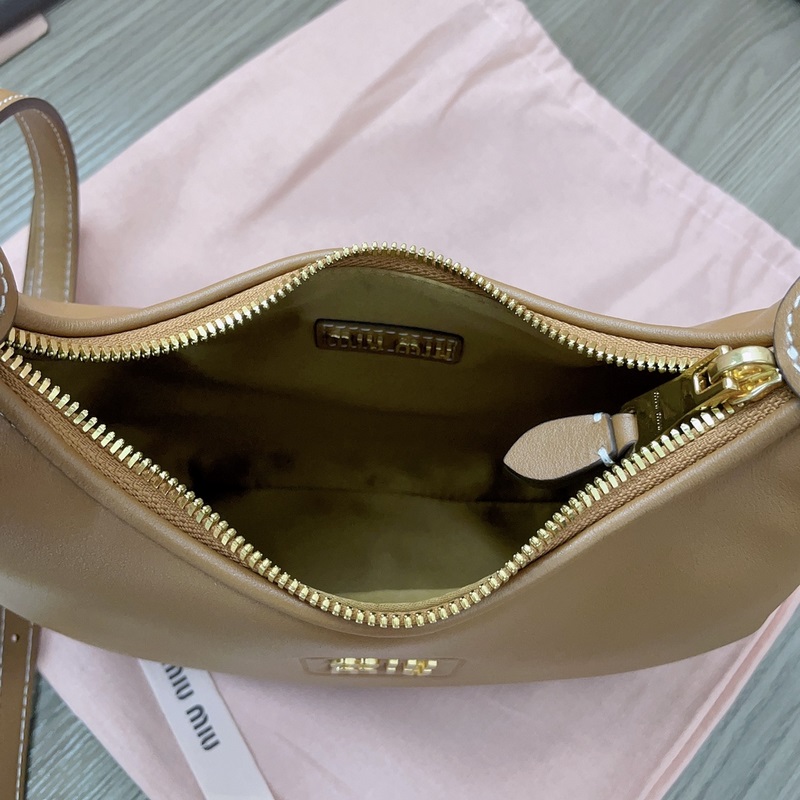 5BC161 미우미우 호보백 공식 웹사이트의 메인 제품 올해 절대 놓칠 수 없는 제품 최고급 수입 송아지 가죽 소재 세련된 잠자리 라인 디자인 정교하고 입체적인 형태 다양한 스타일 뛰어난 적응력 어떤 스타일로 착용하든 일상 외출용으로 잘 어울림 앞면에 상징적인 금속 로고 탈부착 및 길이 조절이 가능한 가죽 어깨 스트랩 면 새틴 안감 많은 유명인과 인터넷 유명인과 같은 스타일 크기 20X17X6Cm 오리지널 포장