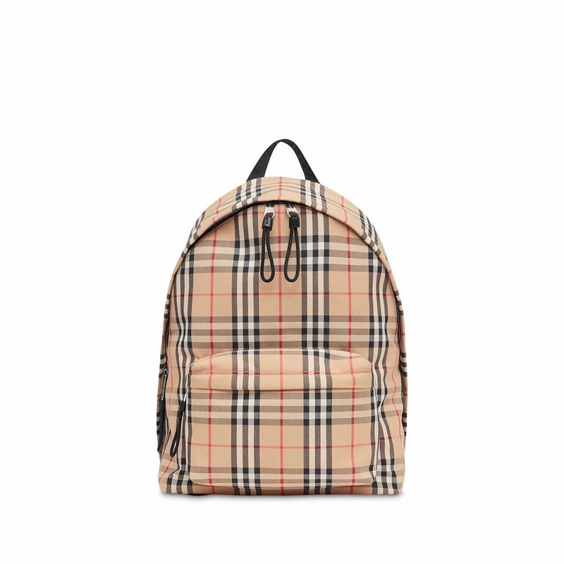 버버리 빈티지 체크 무늬 장식 나일론 백팩 부드러운 가죽 트리밍 자카드 직조 로고가 있는 어깨 끈 버버리 모노그램☆ 코드: 1061 크기: 30.5 x 14.5 x 42.5cm 아이템 번호: XL9618790