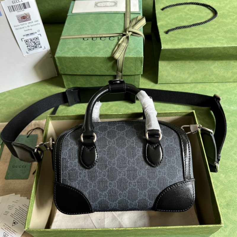 이 컴팩트한 여행 가방은 우아한 블랙 GG 슈프림 캔버스로 만들어져 새로