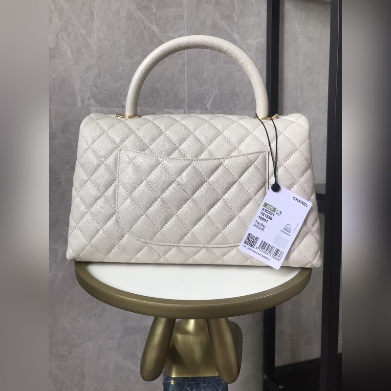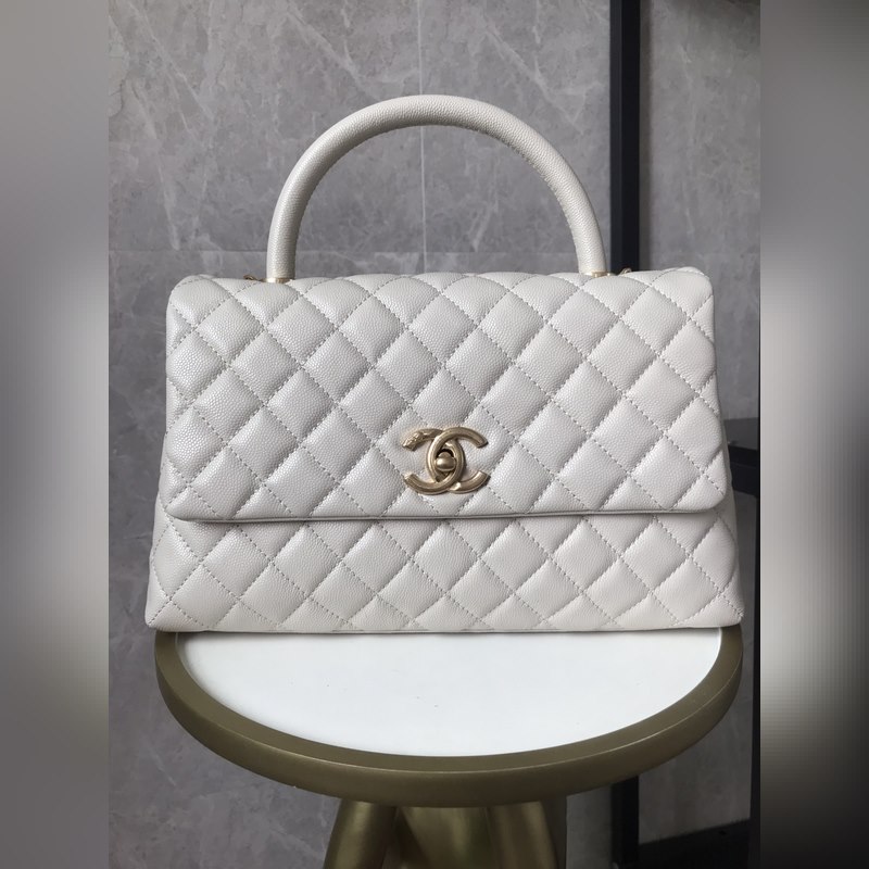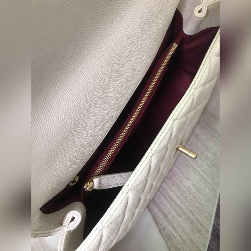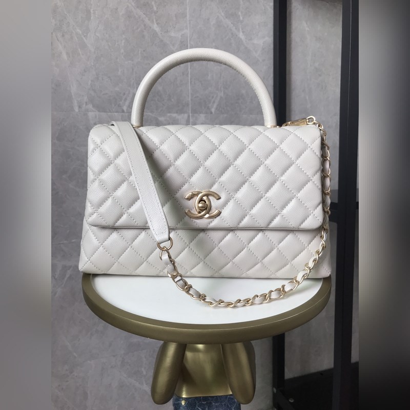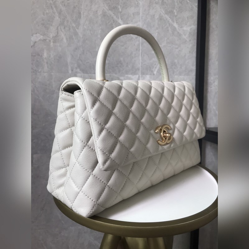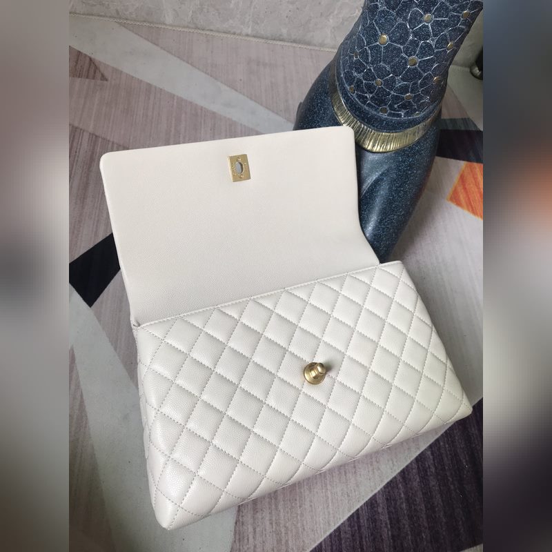 A92991 최신 프리즘 무늬의 세밀한 엠보싱 송아지 가죽 소재의 흰색 볼 패턴 핸들 숄더 크로스바디 핸드백 미디엄 플랩 백 엠보싱 세밀한 송아지 가죽 소재 흰색 볼 패턴과 금도금 금속 크기 18 × 29 × 12cm 흰색